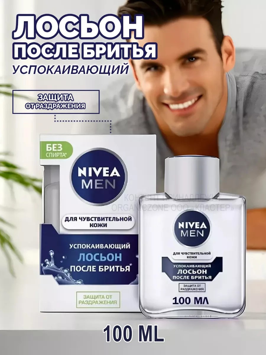 Nivea Лосьон после бритья успокаивающий Men для чувствительной кожи, без спирта, 100 мл. Формула лосьона с экстрактом ромашки и витамином Е обладает нейтральным запахом и обеспечивает ультрагладкое бритье. Не содержит спирта. Уникальная серия средств для чувствительной кожи от NIVEA MEN разработана специально для мужчин, чья кожа склонна к раздражению. Благодаря натуральной ромашке продукты серии для чувствительной кожи успокаивают и защищают твою кожу. Дерматологически протестировано. Для мужчин с чувствительной кожей.