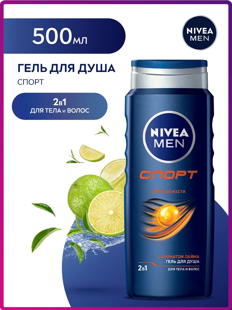"Попробуй гель для душа «Спорт» 2в1 для тела и волос для мужчин от NIVEA MEN для всех типов кожи. С минералами в своем составе эта свежая формула – отличное решение для защиты от запаха. Свежий аромат заряжает энергией и отлично подходит до и после занятий спортом. Проверь его в душе! Преврати ежедневное принятие душа в момент истинного наслаждения и заботы о себе. Подходит для ежедневного использования. pH-сбалансировано. Дерматологически протестировано. Мужской гель для душа можно использовать с мочалкой для скрабирования кожи. Применение: нанесите гель для душа на тело, помассируйте и смойте водой комфортной температуры. Избегайте попадания в глаза. Если кожа тела склонна к сухости, рекомендуем на чистую и сухую кожу тела после душа нанести молочко, бальзам или лосьон для тела от NIVEA.