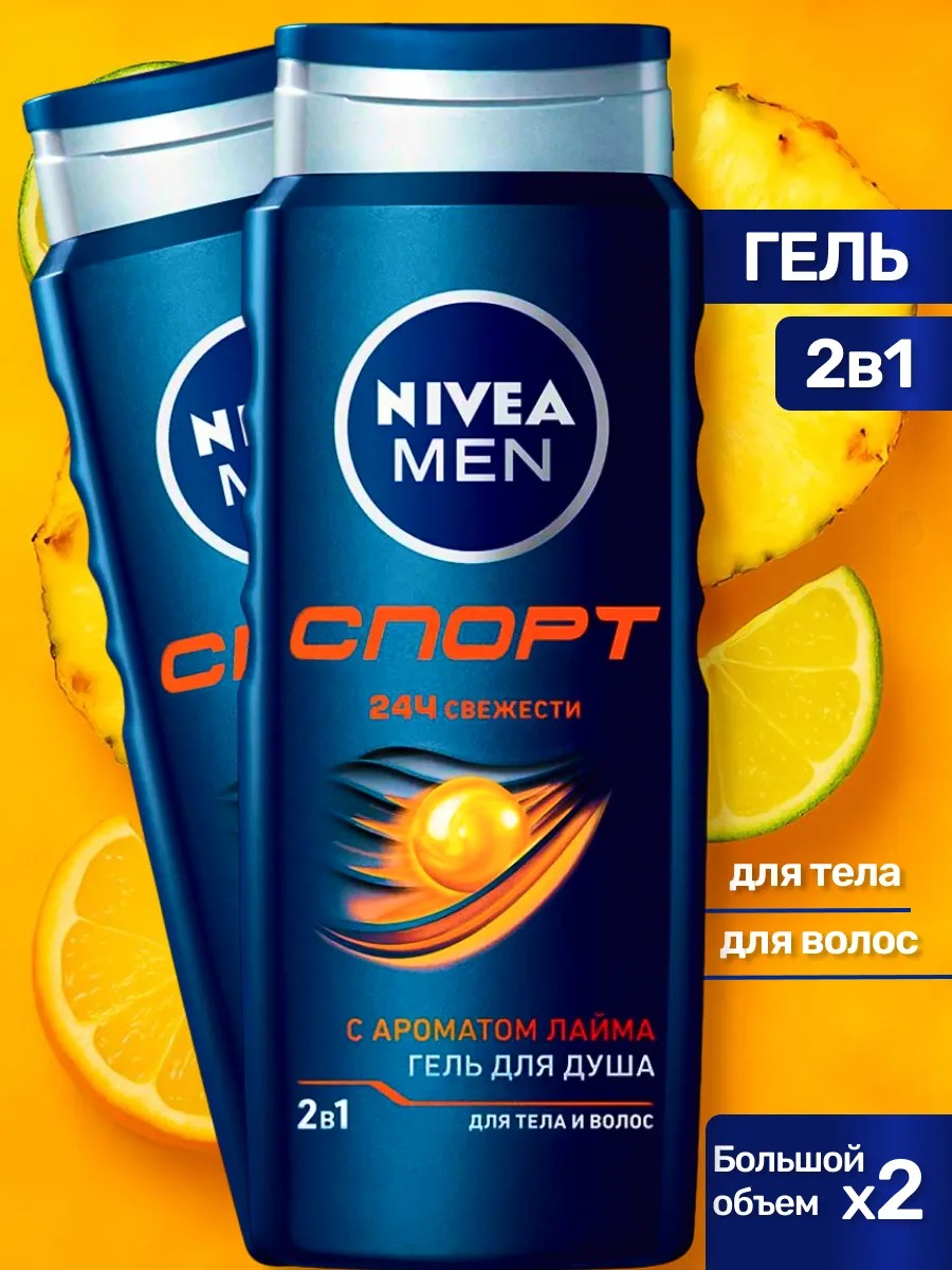 NIVEA Гель для душа мужской с ароматом лайма 500 мл, 2 шт