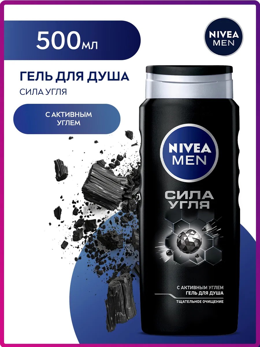 "Попробуйте гель для душа «Сила угля» для мужчин от NIVEA MEN для всех типов кожи. Формула геля с натуральным углем в составе работает как магнит: притягивает загрязнения, тщательно очищая кожу, и не оставляет ощущения сухости. Мужественный аромат тонизирует и освежает. Превратите ежедневное принятие душа в момент истинного наслаждения и заботы о себе. Подходит для ежедневного использования. pH-сбалансировано. Дерматологически протестировано. Мужской гель для душа можно использовать с мочалкой для скрабирования кожи. Применение: нанесите гель для душа на тело, помассируйте и смойте водой комфортной температуры. Избегайте попадания в глаза. Если кожа тела склонна к сухости, рекомендуем на чистую и сухую кожу тела после душа нанести молочко, бальзам или лосьон для тела от NIVEA.