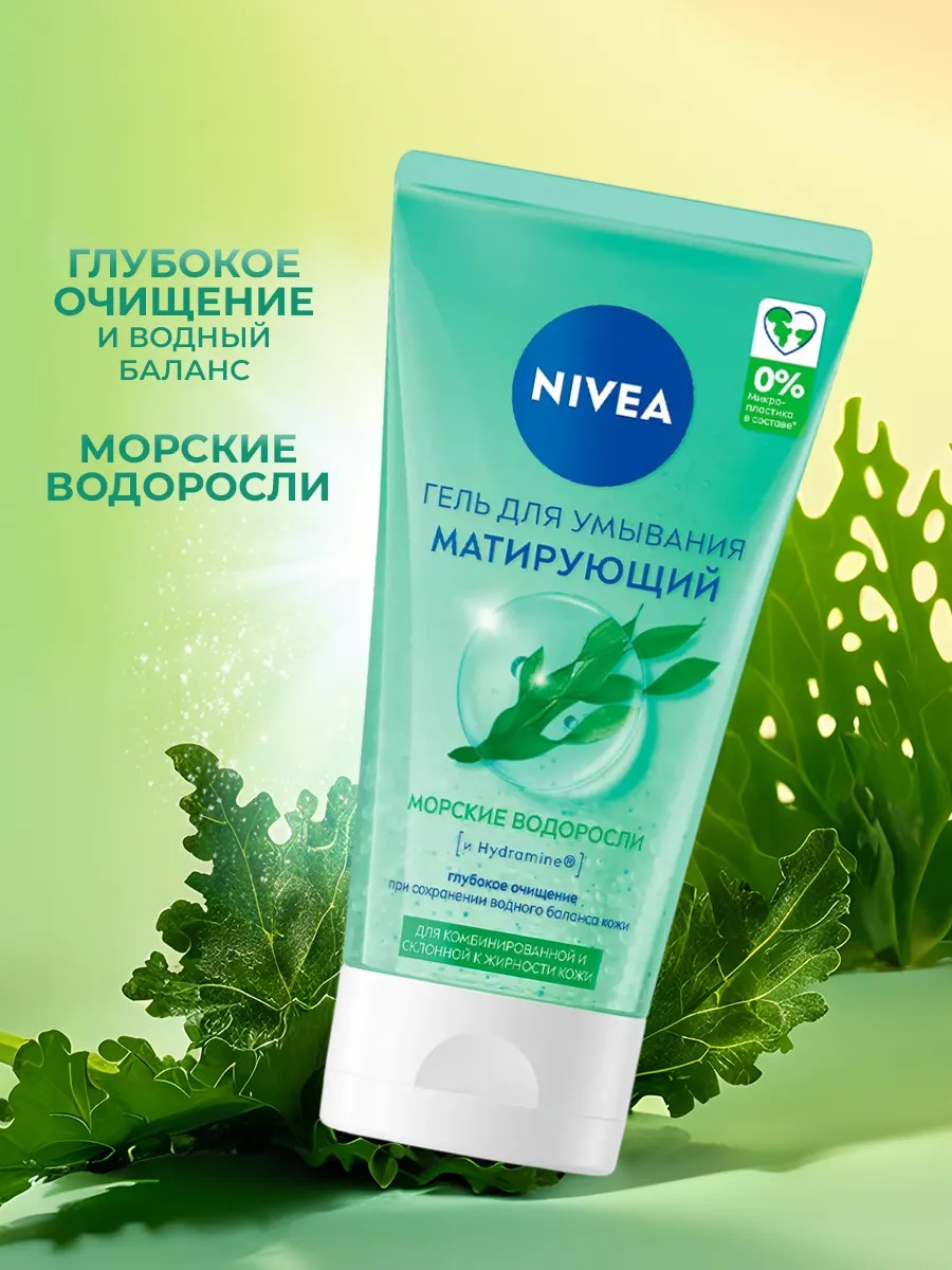 Nivea, гель для умывания матирующий для склонной к жирности кожи, 150 мл. Более 100 лет Nivea разрабатывает особенно бережные формулы для заботы о вашей коже. Матирующий гель для умывания Nivea с морскими водорослями и мягкой водой - идеален для ежедневного ритуала ухода, - бережного очищения кожи и избавления от жирного блеска. Умывание без сухости кожи и поддержка естественного баланса увлажненности. Эффективная формула мягко очищает кожу от загрязнений. Кожа чистая, выглядит здоровой и дышит свободно!
