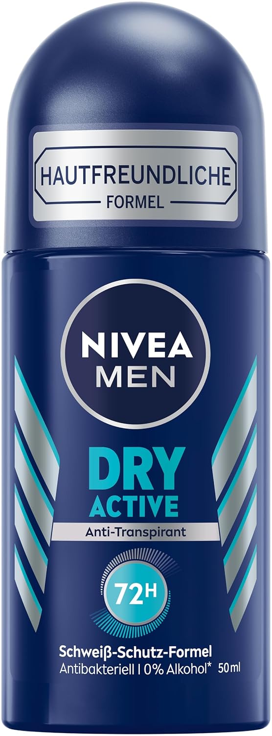 The Nivea Men Dry Active roll-on deodorant impresses as an effective antiperspirant with 72 hours protection against underarm wetness and unpleasant body odour. Thanks to the highly effective dual active formula with two anti-perspirant active ingredients, the deodorant allows a long-lasting dry skin feeling and at the same time the skin under the armpits is gently nourished with the Nivea Men care complex. With its fresh, masculine fragrance, the Nivea Men roll-on deodorant gives a pleasant feeling of freshness. Skin compatibility is clinically confirmed. The antiperspirant provides long-lasting freshness with sweat protection formula: Nivea Men Dry Active Roll-On.