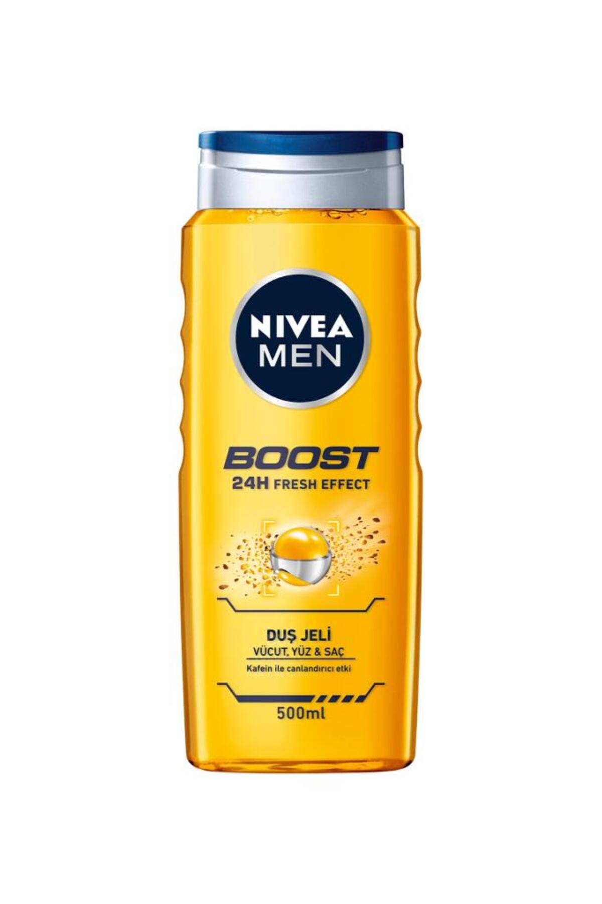 NIVEA MEN Men's Shower Gel Boost 500ml Body Face Hair Mint Extracts Refreshing with Caffeine Masculine Fragrance