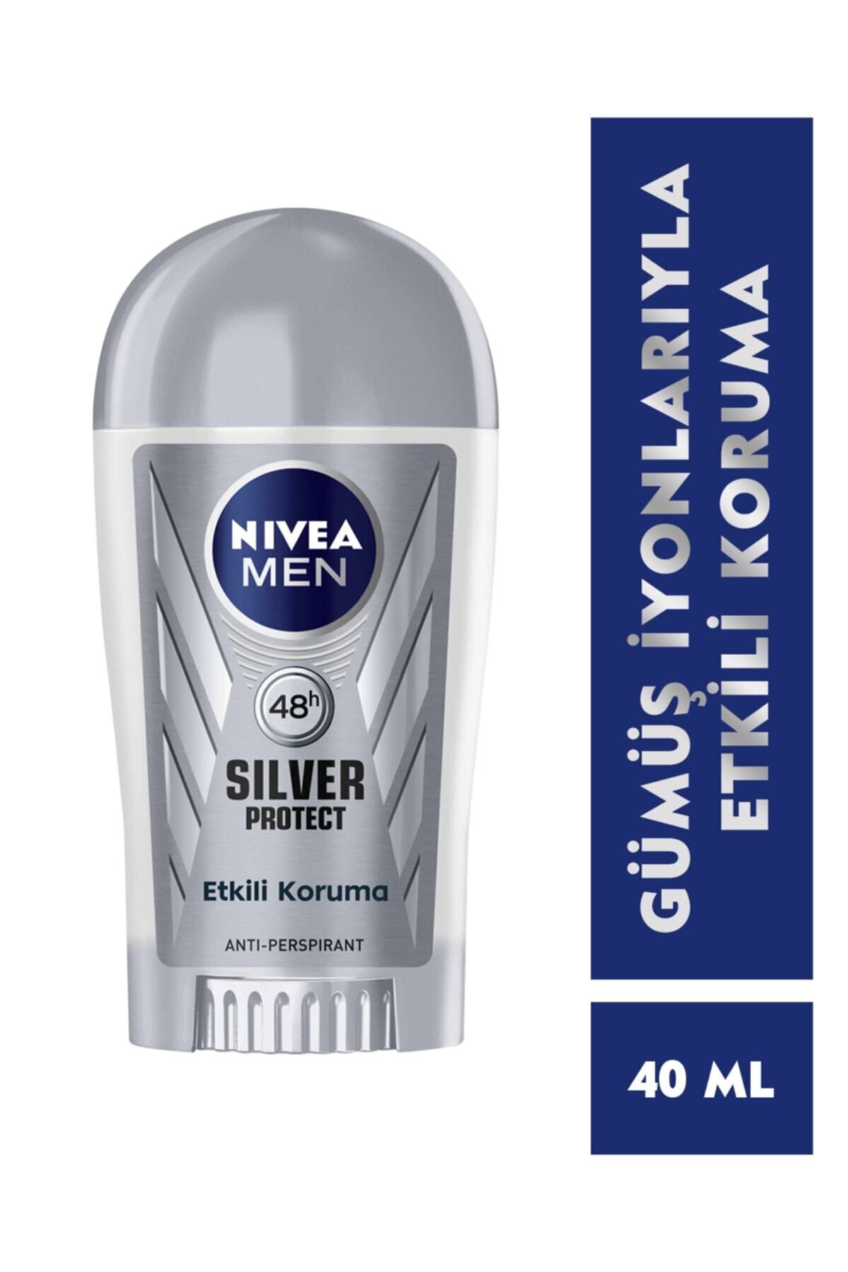 Türkiye'nin Lider DeodorantiNivea Men Erkek Stick Deodorant Silver Protect gümüs iyonlari içeren formülü sayesinde terlemeye ve ter kokusuna karsi savasir.Modern ve maskülen kokusuyla terlemeye karsi 48 saate kadar etkili anti-perspirant korumasi saglar.Etil alkol içermez.Formülü alkol ve boyar madde içermezTirastan veya tüylerinizi kisalttiktan sonra bile cilt toleransi dermatolojik olarak onaylanmistir