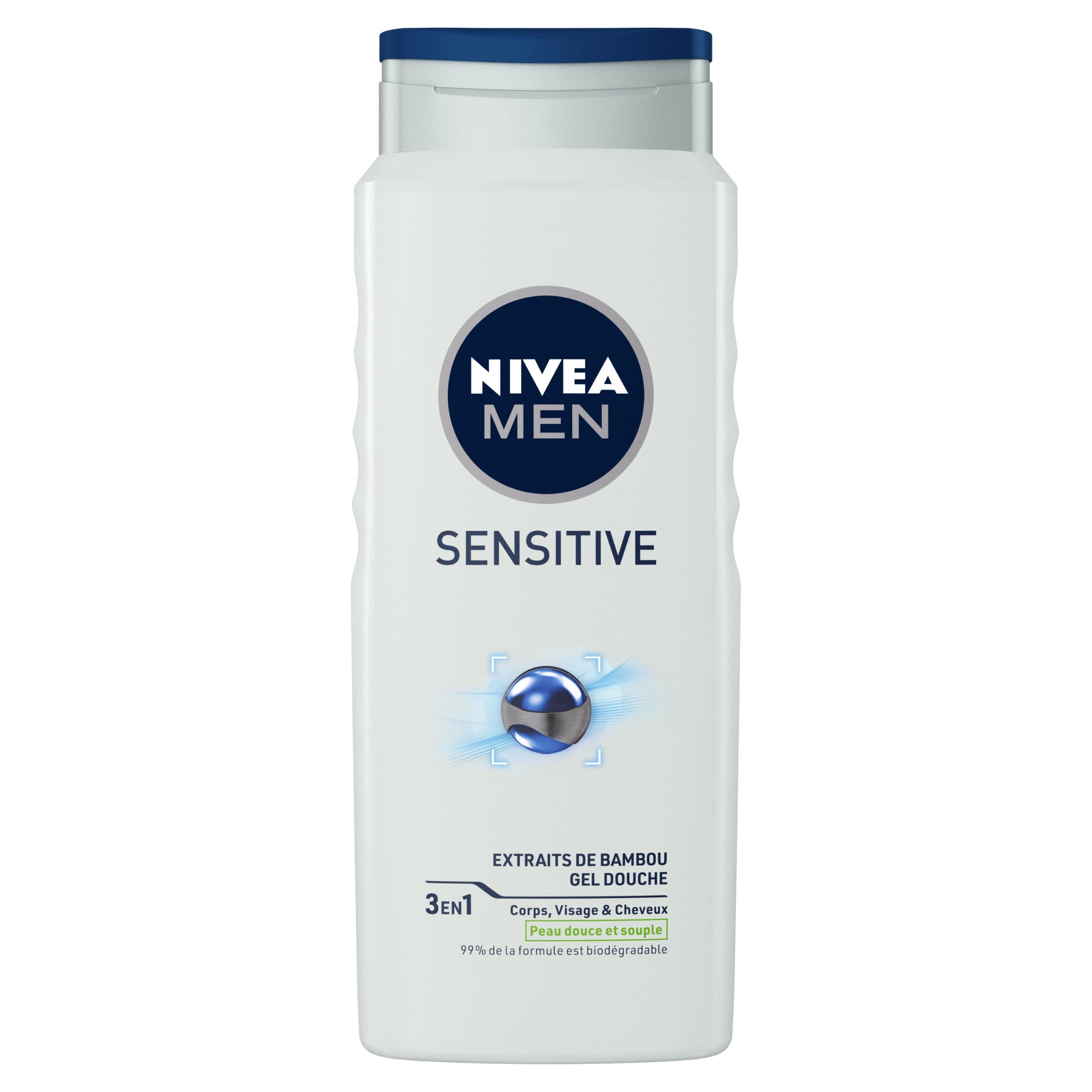 NIVEA MEN Sensitive Shower Gel – Ideal shower care for sensitive skin. Just like women's, men's skin also needs special care. Many men have sensitive skin, sometimes prone to irritation, and it's important to take care of it. That's why NIVEA MEN created the Sensitive range, a line of products with a formula specially adapted to this skin type, to gently care for it. Both practical and gentle, the NIVEA MEN 3-in-1 Sensitive Shower Gel can be used on the body, face, and hair. This allows you to travel light, without having to carry multiple products! Specially designed for the needs of sensitive skin, this shower gel is alcohol-free and cleanses the skin without irritating or drying it out. Furthermore, its formula, enriched with bamboo extract, leaves your skin supple and soft after each use. The benefits of the 3-in-1 Sensitive Shower Gel: Cleanses the body, face, and hair. Specially designed for sensitive skin. Cleanses without drying. Enriched with bamboo extract. Alcohol-free and dermatologically tested formula. Quantity: 3 x 500 mlPackaging – NIVEA MEN Sensitive 3-in-1 Shower Gel, men's cleansing gel for body, face, and hair, special care for sensitive skin, 3 x 500ml shower gel pack, item number: 81084. Natural ingredient – Enriched with bamboo extract, this NIVEA MEN body gel cares for your skin and leaves it soft and supple after each use. 0 alcohol – Dermatologically tested, this alcohol-free shower gel cleanses the skin gently thanks to its mild formula adapted to the skin's pH. Sensitive skin – This cleansing gel has been specially designed for men with sensitive or irritated skin, as it cleanses without drying it out. 3-in-1 – A shower gel that acts as a body wash, face wash, and shampoo all in one? Sensitive Shower Gel is your ideal ally, to take everywhere!NIVEA MEN Gel Douche Sensitive 3 en 1 (1 x 500 ml), gel douche homme pour peau sensible, nettoyant doux pour corps, cheveux et visage, savon douche à l'extrait de bambouDESCRIPTION DU PRODUIT NIVEA MEN Gel Douche Sensitive – Un soin douche idéal pour les peaux sensibles Tout comme les femmes, la peau des hommes aussi a besoin de soins particuliers. Beaucoup d'hommes ont la peau sensible, parfois sujette aux irritations, et il est important d'en prendre soin. C'est pourquoi NIVEA MEN a créé la gamme Sensitive, une gamme de produits à la formule spécialement adaptée à ce type de peau, afin d'en prendre soin tout en douceur. À la fois pratique et doux, le Gel Douche Sensitive 3 en 1 de NIVEA MEN peut s'utiliser aussi bien sur le corps, le visage et les cheveux. Vous pouvez ainsi voyager avec un sac léger, sans vous encombrer de plusieurs produits ! Spécialement conçu pour les besoins des peaux sensibles, ce gel douche ne contient pas d'alcool et nettoie ainsi la peau sans l'agresser ni la dessécher. De plus, sa formule enrichie en extrait de bambou laisse votre peau souple et douce après chaque utilisation. Les avantages du Gel Douche Sensitive 3 en 1 : Nettoie à la fois le corps, le visage et les cheveux Spécialement conçu pour les peaux sensibles Nettoie sans dessécher Enrichi en extrait de bambou Formule sans alcool et testée dermatologiquement Quantité : 3 x 500 mlEmballage – NIVEA MEN Gel Douche Sensitive 3 en 1, gel nettoyant homme pour corps, visage et cheveux, soin homme spécial peaux sensibles, lot gel douche 3 x 500 ml, numéro d'article : 81084. Ingrédient naturel – Enrichi en extrait de bambou, ce gel corps de NIVEA MEN prend soin de votre peau et la laisse douce et souple après chaque utilisation. 0 d'alcool – Testé dermatologiquement, ce gel lavant sans alcool nettoie la peau en la respectant grâce sa formule douce adaptée au pH de la peau. Peaux sensibles – Ce gel nettoyant a été spécialement conçu pour les hommes qui ont la peau sensible ou irritée, car il la nettoie sans la dessécher. 3 en 1 – Un gel douche qui fait à la fois nettoyant corps, nettoyant visage et shampoing ? Le Gel douche Sensitive est votre allié idéal, à emporter partout !.