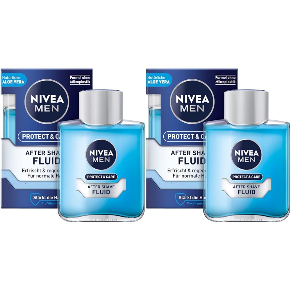 NIVEA MEN Protect Care After Shave Fluid (100 ml), beruhigendes After Shave, Hautpflege nach der Rasur mit Aloe Vera und Pro Vitamin B5 (Packung mit 2) 100 ml (2er Pack)