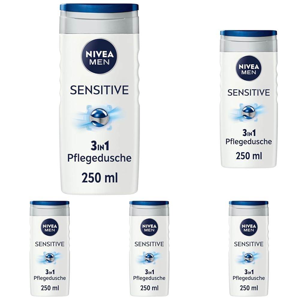 Nivea Men Sensitive 3-in-1 Shower Gel 250 ml (Pack of 2) Unscented 250 ml (Pack of 2)
