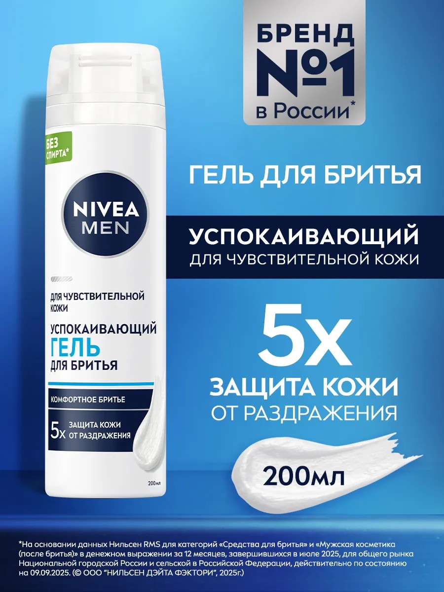 | Полное наименование товара | Гель для бритья успокаивающий NIVEA MEN для чувствительной кожи без спирта*, 200 мл. |