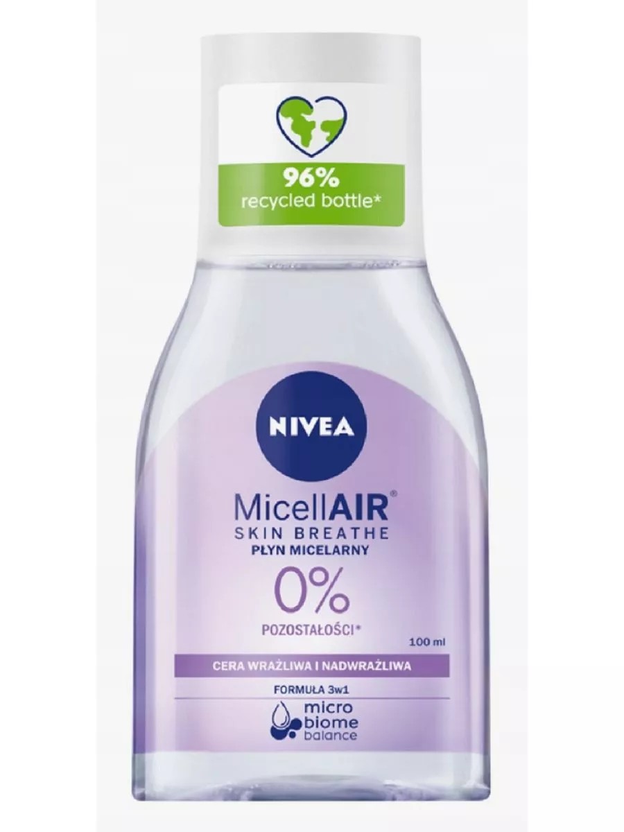 Nivea MicellAir, Micellar Water for Sensitive Skin, Skin Breathe, 100 ml. Developed specifically for sensitive skin, it's ideal for removing makeup and impurities. Its formula is enriched with lotus extract, known for its soothing and protective properties. It contains micelles—tiny particles that attract impurities, makeup, and excess sebum without irritating the skin. Micellar water quickly and effectively removes even stubborn makeup, leaving a feeling of freshness and comfort. Dermatologically tested, it's suitable for the sensitive skin around the eyes.