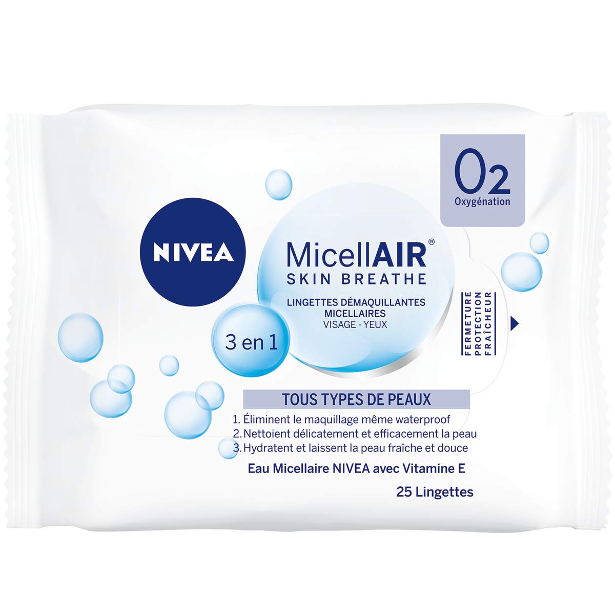 Packaging - NIVEA MicellAIR SKIN BREATHE Micellar make-up remover wipes, 4 x 25 wipes, item number: 89252. Beauty tips: for clean and soft skin, use this eye make-up remover while performing circular movements with the wipe from bottom to top. Facial Care for Women: These easy-to-carry wipes allow you to remove stubborn makeup and waterproof mascara while protecting your eyelashes. 3-in-1 formula: can be used as a make-up remover for face, eyes and lips, also cleanses the skin and hydrates and refreshes. NIVEA care: the 3-in-1 cleansing wipes are enriched with NIVEA micellar water with vitamin E, for perfect skin cleansing and without residue.Nivea MicellAir Skin Breath Milcelle, wachtige groei (4 x 25 stuks), 3-in-1 verwijderaar, vochtinbrengend en verfrist gezicht, ogen en lippenVerpakking - NIVEA MicellAIR SKIN BREATHE Micellaire make-up remover doekjes, 4 x 25 doekjes, artikelnummer: 89252. Schoonheidstips: voor een schone en zachte huid gebruik je deze oogmake-up remover terwijl je met het doekje cirkelvormige bewegingen van onder naar boven uitvoert. Gezichtsverzorging voor dames: deze gemakkelijk te dragen doekjes maken het mogelijk om hardnekkige make-up en waterdichte mascara te verwijderen en tegelijkertijd je wimpers te beschermen. 3-in-1 formule: te gebruiken als make-up remover voor gezicht, ogen en lippen, reinigt ook de huid en hydrateert en verfrist. NIVEA verzorging: de 3-in-1 reinigingsdoekjes zijn verrijkt met NIVEA micellair water met vitamine E, voor een perfecte huidreiniging en zonder resten.
