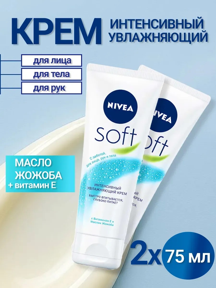 Попробуйте наш универсальный увлажняющий крем NIVEA SOFT 2 шт по 75 мл - высокоэффективный интенсивный увлажняющий крем для ежедневного использования.