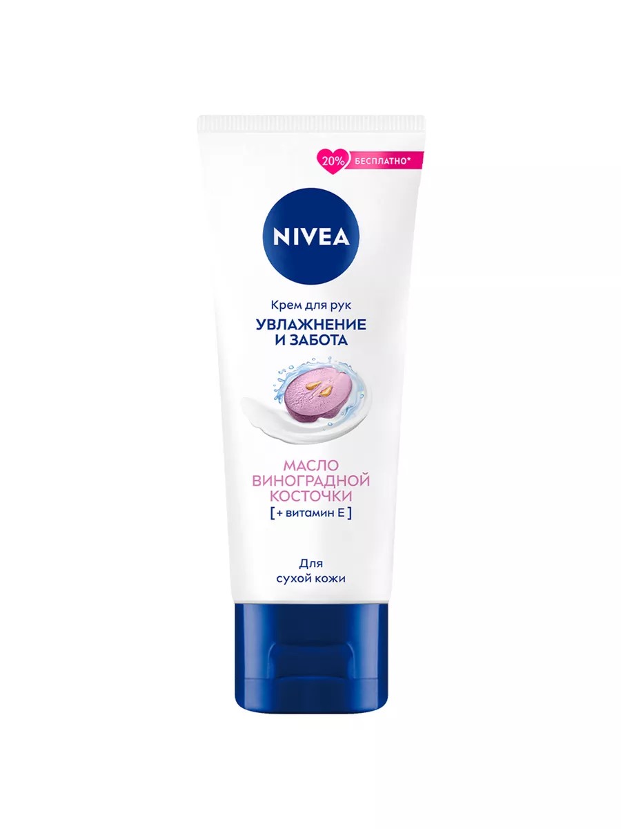 Nivea Крем для рук Увлажнение и заботас маслом виноградной косточки 80мл. Прощайтесь с сухостью кожи! Попробуйте крем для рук «Увлажнение и забота» от NIVEA с маслом виноградной косточки и витамином Е. Крем глубоко питает и увлажняет кожу, придавая рукам ухоженный вид. Косметика, созданная для вас! Крем для рук, который подарит вашей коже истинное увлажнение и заботу. Уникальное средство с маслом виноградной косточки сделает кожу мягкой и шелковистой. Насладитесь питательным эффектом. Ваша кожа больше не будет страдать от сухости.