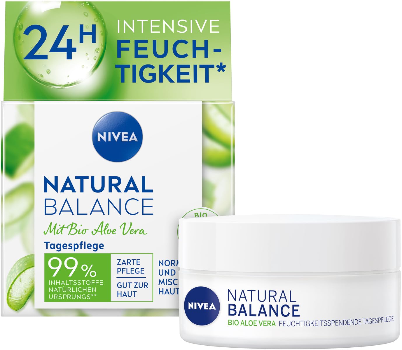 NIVEA Natural Balance Moisturizing day care with organic aloe vera, jojoba and almond oil NIVEA Natural Balance day care for normal and combination skin moisturizes for 24 hours, penetrates quickly and leaves a feeling of freshness. The facial treatment is made up of 99 ingredients of natural origin and is 100 climate neutralized . Organic aloe vera from organic farming refills the skin's water retention for more suppleness and radiance. With jojoba and almond oil, the skin cream contains valuable oils that ensure a pleasant feeling on the skin and deep hydration. At the same time, the face cream provides a pleasant feeling of softness and freshness on the skin. The day cream is also suitable for sensitive skin. The skin tolerance of the day care is dermatologically tested. Product benefits in detail: Moisturizing day care. Promotes the natural balance of the skin. Hydrates for 24 hours. Penetrates quickly. For a feeling of freshness on the skin. Use : Apply daily in the morning to cleansed face, neck and décolleté. ISCC certified plastic pot, supports the use of renewable raw materials. 100 eco-friendly energy formula. Offsetting remaining CO2 emissions through certified climate protection projects. Ingredients from nature that retain more than 50 of its molecular structure (natural state), including water. INGREDIENTS Aqua, glycerin, cetearyl alcohol, denat alcohol. Simmondsia Chinensis Seed Oil Prunus Amygdalus Dulcis Oil DicaprylEther Butyrospermum Parkii Glyceryl stearate Coco-Caprylate caprate Aloe Barbadensis leaf juice powder Helianthus Annuus seed oil Tocopherol. Caprylate sodium stearoyl glutamate, xanthan gum, levulinic acid, sodium levulinate, ethylhexylglycerin, p-anisic Acid, sodium chloride, linalool, limonene, citronellol, alpha-isomethyl ionone, benzyl alcohol, geraniol DIRECTIONS FOR USE N C Scope of delivery details – NIVEA Natural Balance Moisturizing Day Cream for normal and combination skin (50 ml) Item number 87126. Skin and environment – The day cream is a 100 climate-neutralized product with 99 ingredients of natural origin and a vegan formula. Natural balance – The facial care supports the skin's natural balance, absorbs quickly and provides a pleasant feeling of freshness. Valuable ingredients – The formula enriched with organic aloe vera, jojoba and almond oil contains valuable ingredients from nature, suitable for normal and combination skin. Daily skin care: The moisturizing facial care provides a pleasant feeling on the skin all day long and cares for the skin. NIVEA Natural Balance Soin de jour hydratant à l'aloe vera bio, huile de jojoba et d'amande Le soin de jour Natural Balance NIVEA pour peaux normales et mixtes hydrate pendant 24 heures, pénètre rapidement et laisse une sensation de fraîcheur. Le soin du visage est composé à 99 d'ingrédients d'origine naturelle et est 100 climatiquement neutralisé . L'aloe vera bio issu de l'agriculture biologique reremplit la rétention d'eau de la peau pour plus de souplesse et de rayonnement. Avec de l'huile de jojoba et d'amande, la crème pour la peau contient des huiles précieuses qui assurent une sensation agréable sur la peau et une hydratation profonde. Dans le même temps, la crème pour le visage procure une sensation agréable de douceur et de fraîcheur sur la peau. La crème de jour convient également aux peaux sensibles. La tolérance cutanée du soin de jour est testée dermatologiquement. Les avantages du produit en détail : Soin de jour hydratant. Favorise l'équilibre naturel de la peau. Hydrate pendant 24 heures. Pénètre rapidement. Pour une sensation de fraîcheur sur la peau. Utilisation : Appliquer quotidiennement le matin sur le visage, le cou et le décolleté nettoyés. Pot en plastique certifié ISCC, soutient l'utilisation de matières premières renouvelables. Formule 100 d'énergie écologique. Compensation des émissions de CO2 restantes grâce à des projets certifiés de protection du climat. Ingrédients issus de la nature qui conservent plus de 50 de sa structure moléculaire (état naturel), y compris l'eau. INGRÉDIENTS Aqua, glycérine, alcool cétéarylique, alcool denat. Huile de graines Simmondsia Chinensis Prunus Amygdalus Dulcis Oil DicaprylEther Butyrospermum Parkii Stearate de glycérylate Coco-Caprylate caprate Poudre de jus de feuilles d'aloe Barbadensis huile de graines de Helianthus Annuus Tocophérol. Caprylate stéaroyl glutamate de sodium, xanthane gum, acide de levulinic, lévulinate de sodium, éthylhexylglycérine, p-anisic Acid, chloride de sodium, linalool, limonène, citronellol, alpha-isomethyl ionone, alcool benzyl, géraniol MODE D'EMPLOI N C Contenu de la livraison détails – NIVEA Natural Balance Crème de jour hydratante pour peaux normales et mixtes (50 ml) Référence 87126. Peau et environnement – Le soin de jour est un produit 100 climatiquement neutralisé avec 99 d'ingrédients d'origine naturelle et une formule végétalienne. Équilibre naturel - Le soin du visage soutient l'équilibre naturel de la peau, pénètre rapidement et procure une agréable sensation de fraîcheur. Ingrédients précieux - La formule enrichie en aloe vera bio, huile de jojoba et d'amande contient des ingrédients précieux issus de la nature, adaptée aux peaux normales et mixtes. Soin quotidien de la peau : le soin hydratant pour le visage procure une sensation agréable sur la peau tout au long de la journée et prend soin de la peau.