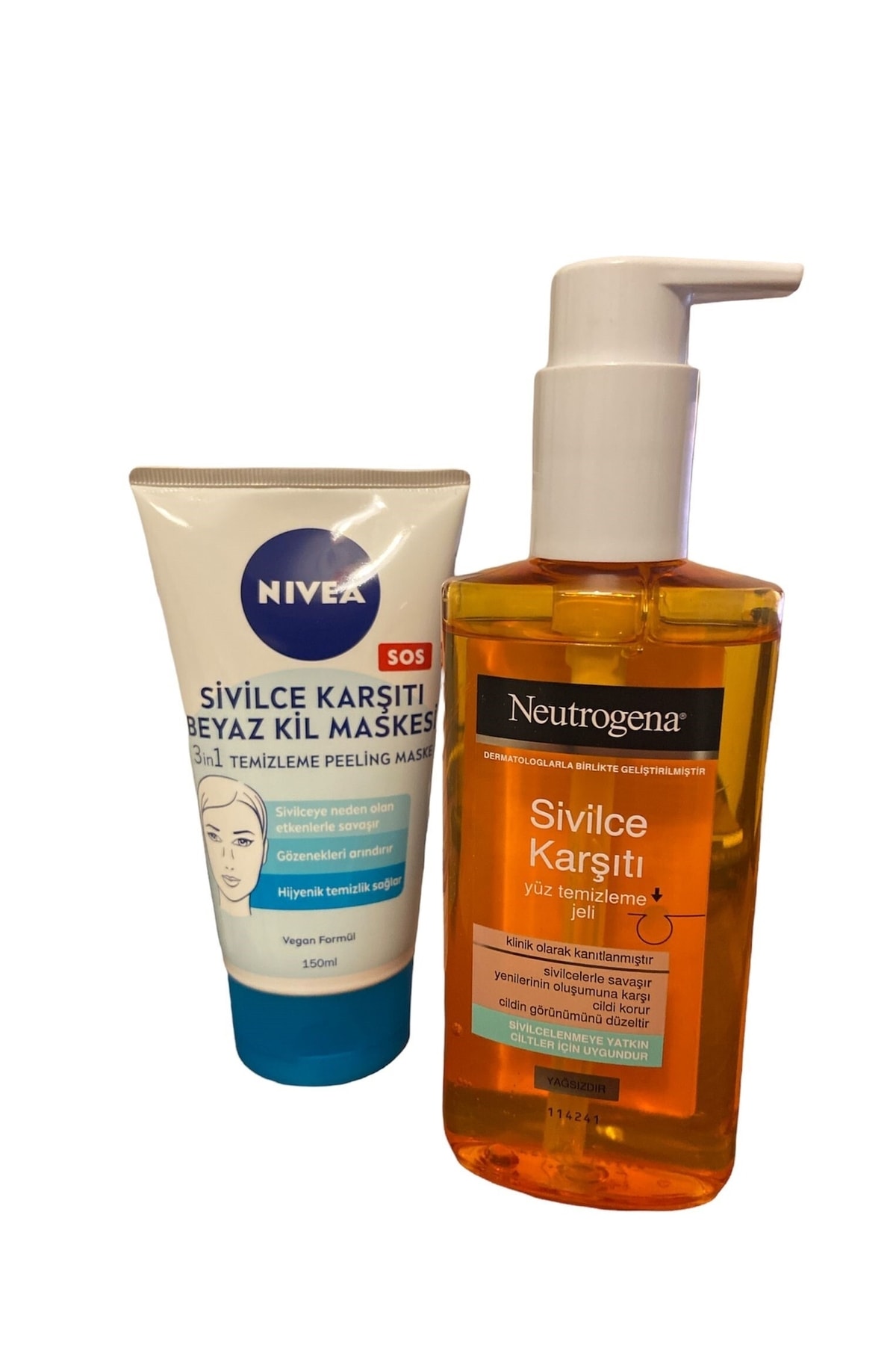 NIVEA Neutrogena Anti-Acne Face Wash Gel & Nive Anti-Acne White Clay Mask