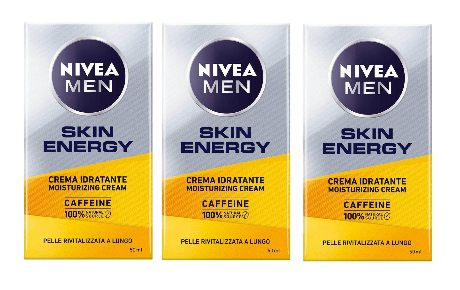 NIVEA NIVEA MEN Skin Energy Moisturizing Face Cream 3 x 50 ml Revitalizing Men's Cream Energizing Face Cream Enriched with 100% Natural Caffeine