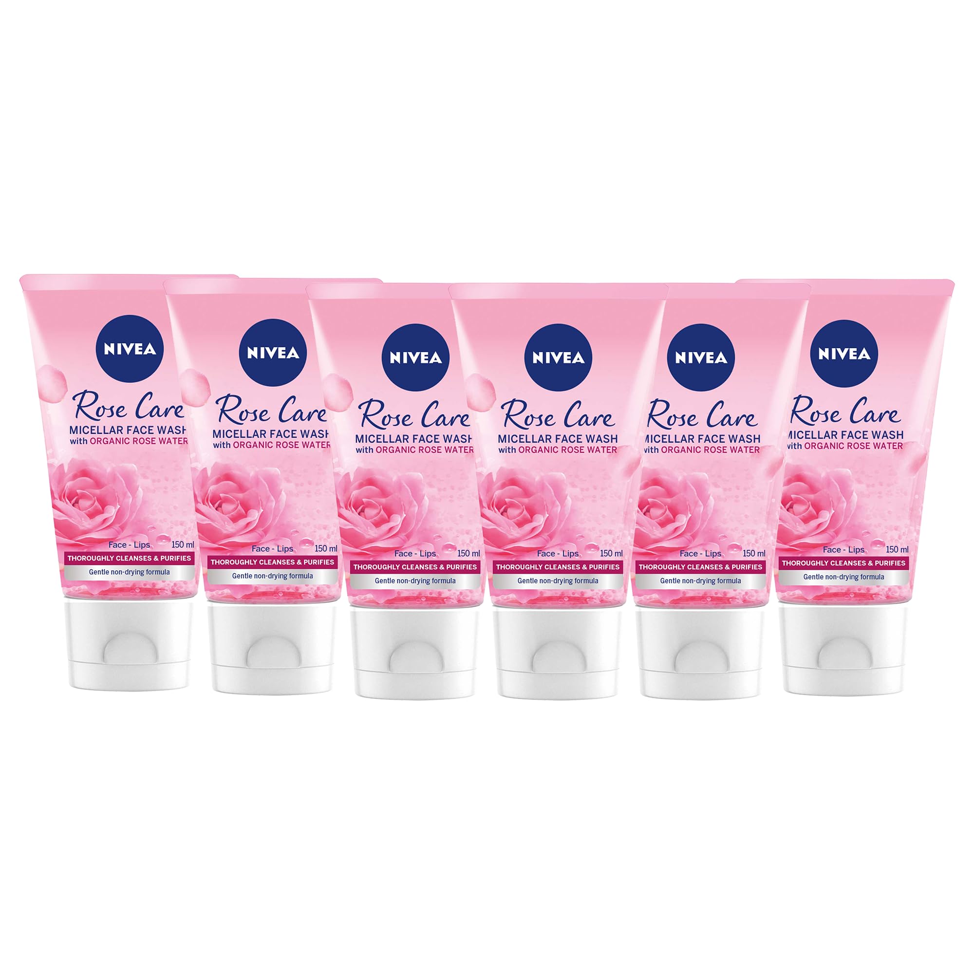 NIVEA NIVEA MicellAIR Pack of 6 Micellar Facial Cleansing Gels Rose Micellar (150 ml) Micellar Cleansing Water with a Soothing Rose Scent