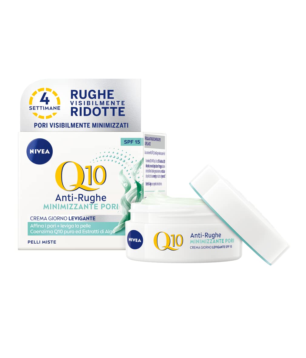 The patented formula effectively combats and prevents fine lines and wrinkles, leaving skin feeling plump. Coenzyme Q10, a powerful antioxidant and the skin's natural anti-aging defense, is combined with creatine, which stimulates the skin's natural collagen production for effective wrinkle reduction. In addition, the formula is enriched with algae extract for a gentle exfoliating action suitable for combination skin. SPF 15 and UVA UVB protection help protect the skin against premature aging and the formation of wrinkles caused by the sun. INGREDIENTS Aqua, Cyclomethicone, Dicaprylyl Carbonate, Glycerin, Ethylhexyl Salicylate, Alcohol Denat, Sucrose Polystearate, Butyl Methoxydibenzoylmethane, Dimethicone, Methylpropanediol, Octocrylene, Sodium Phenylbenzimidazole Sulfonate, Ubiquinone, Creatine, 1-Methylhydantoin-2-Imide, Fucus Vesiculosus Extract, Hydrogenated Polyisobustie, Sodium Stearoyl Glutamate, Caprylic Capric Triglyceride, Chondrus Crispus Extract, Carbomer, Acrylates C10-30 Alkyl Acrylate Crosspolymer, Ammonium Acryloyldimethyltaurate VP Copolymer, Dimethiconol, Distarch Phosphate, Sodium Chloride, Trisodium EDTA, Phenoxyethanol, Limonene, Linalool, Benzyl Alcohol, Alpha-Isomethyl Ionone, Geraniol, Parfum, CI 42090 SAFETY WARNING For external use only. Avoid contact with eyes. Keep away from naked flame or direct heat sources. See moreRefines pores apply every morning to a clean face. Lines and wrinkles are visibly reduced after four weeks, and skin feels clearer and softer after two weeks. SPF 15 and UVA UVB protection help protect skin against premature aging and the formation of wrinkles caused by the sun. The formula is enriched with algae extracts for a gentle exfoliating action suitable for combination skin. Coenzyme Q10, an antioxidant and natural anti-aging defense for the skin, combined with creatine, stimulates the skin's collagen production for effective anti-wrinkle action. In vitro test. The patented formula effectively combats and prevents fine lines and wrinkles, leaving skin feeling toned.Nivea - Visage Crème Anti Rides Q10 Jour Light, 50 mlDESCRIPTION DU PRODUIT DESCRIPTION DU PRODUIT La formule brevetée combat efficacement et prévient les lignes fines et les rides, laissant la peau ronde au toucher. Le Coenzyme Q10, puissant anti-oxydant et naturel défense anti-âge de la peau, est combiné avec la créatine, qui stimule la production naturelle de collagène de la peau pour une action antirides efficace. De plus, la formule est enrichie d'extrait d'Alga pour une action ponceuse adaptée aux peaux mixtes. SPF15 et protections UVA UVB aident à protéger la peau contre le vieillissement précoce et la formation de rides causées par le soleil. INGRÉDIENTS Aqua, Cyclomethicone, Dicaprylyl Carbonate, Glycerin, Ethylhexyl Salicylate, Alcohol Denat, Sucrose Polystearate, Butyl Methoxydibenzoylmethane, Dimethicone, Methylpropanediol, Octocrylene, Sodium Phenylbenzimidazole Sulfonate, Ubiquinone, Creatine, 1-Methylhydantoin-2-Imide, Fucus Vesiculosus Extract, Hydrogenated Polyisobustie, Sodium Stearoyl Glutamate, Caprylic Capric Triglyceride, Chondrus Crispus Extract, Carbomer, Acrylates C10-30 Alkyl Acrylate Crosspolymer, Ammonium Acryloyldimethyltaurate VP Copolymer, Dimethiconol, Distarch Phosphate, Sodium Chloride, Trisodium EDTA, Phenoxyethanol, Limonene, Linalool, Benzyl Alcohol, Alpha-Isomethyl Ionone, Geraniol, Parfum, CI 42090 AVERTISSEMENT DE SÉCURITÉ For external use only. Avoid contact with eyes. Keep away from naked flame or direct heat sources. Voir plusAffine les pores appliquer chaque matin sur le visage propre. Lignes et rides visiblement réduites après quatre semaines et peau plus claire et douce au toucher après deux semaines. SPF15 et protection UVA UVB aident à protéger la peau contre le vieillissement précoce et la formation de rides causées par le soleil. La formule est enrichie d'extraits d'Alga pour une action de ponçage adaptée aux peaux mixtes. Le coenzyme Q10, anti-oxydant et naturel défense anti-âge de la peau, combiné à la Creatina, stimule la production de collagène de la peau , pour une action antirides efficace test en vitro. La formule brevetée combat efficacement et empêche les lignes fines et les rides, laissant la peau tonique au toucher.