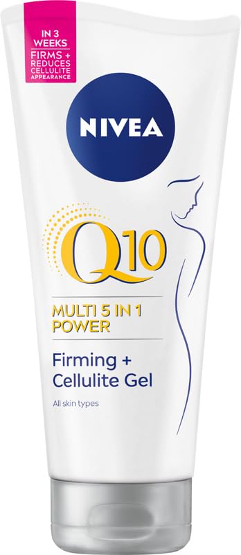NIVEA Q10 MULTI POWER 5in1 Firming Anti-Cellulite Gel contains a formula with coenzyme Q10 and lotus extract. It visibly firms the skin in 2 weeks and reduces the appearance of cellulite in 3 weeks. The unique Q10 body gel formula is quickly absorbed and provides an invigorating fragrance. It instantly refreshes the skin and leaves it feeling silky smooth. Experience the energy boost you'll feel on your skin. For best results: Apply daily to key areas – massage is not necessary (but optional if desired!). Suitable for all skin types. Trust NIVEA quality! Skin tolerance dermatologically confirmed. INGREDIENTS Aqua, Alcohol Denat., Glycerin, Dimethicone, Ubiquinone, Carnitine, Nelumbo Nucifera Leaf Extract, Glyceryl Glucoside, Chondrus Crispus Extract, Sodium Hydroxide, Acrylates C10-30 Alkyl Acrylate Crosspolymer, Sodium Polyacrylate, Butylene Glycol, Phenoxyethanol, Limonene, Linalool, Geraniol, Citral, Parfum, CI 42090 DIRECTIONS Apply all over the body and wait until absorbed. See moreThe energy boost you'll feel on your skin. Leaves skin silky smooth. Instantly refreshes skin. Reduces the appearance of cellulite in 3 weeks. Apparently firms skin in 2 weeks.NIVEA Q10 Gel raffermissant pour le corps anti-cellulite, 200 mlDESCRIPTION DU PRODUIT DESCRIPTION DU PRODUIT NIVEA Q10 MULTI POWER 5in1 Gel raffermissant Anti-cellulite contient une formule avec coenzyme Q10 et extrait de lotus. Il raffermit visiblement la peau en 2 semaines. Réduit l'apparence de la cellulite en 3 semaines. La formule unique de gel pour le corps Q10 est rapidement absorbée et procure un parfum revitalisant. Il rafraîchit instantanément la peau et la laisse soyeuse. La dose d'énergie que vous ressentirez sur votre peau. Pour les meilleurs résultats: Appliquer quotidiennement sur les zones clés - le massage n"est pas nécessaire (Mais facultatif si vous le souhaitez!). Convient à tous les types de peau. Faites confiance à la qualité NIVEA! Tolérance cutanée confirmée dermatologiquement. INGRÉDIENTS Aqua, Alcool Denat., Glycérine, Dimethicone, Ubiquinone, Carnitine, Nelumbo Nucifera Leaf Extract, Glycéryle Glucoside, Chondrus Crispus Extract, Sodium Hydroxide, Acrylates C10-30 Alkyl Acrylate Crosspolymer, Polyacrylate de sodium, Butylène Glycol , Phenoxyethanéthane ol, Limonene, Linalool, Géraniol, Citral, Parfum, CI 42090 MODE D'EMPLOI Appliquer sur tout le corps et attendre jusqu'à absorption. Voir plusLa dose d'énergie que vous ressentirez sur votre peau. Rend la peau soyeuse et lisse. Rafraîchit instantanément la peau. Réduit l'apparence de la cellulite en 3 semaines. Apparemment raffermit la peau en 2 semaines.