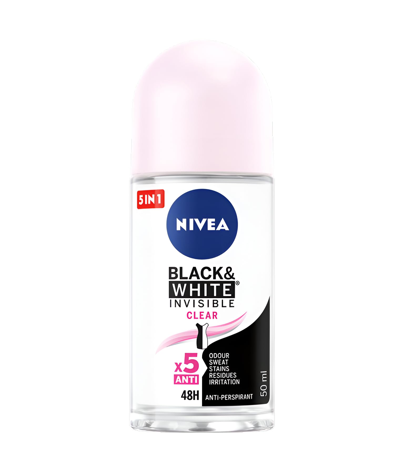 NIVEA Black White Invisible Clear Roll-On Antiperspirant provides reliable protection against perspiration for up to 48 hours. It is also highly effective in preventing yellow sweat stains on white clothes and white antiperspirant stains on black clothes. NIVEA Black White Invisible Clear Roll-On Antiperspirant combines effectiveness and gentleness.