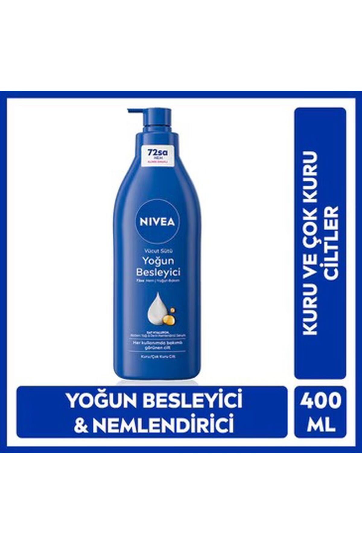 NIVEA Besleyici ve Nemlendirici Vücut Sütü Ilk kullanimda bile çok kuru cildinizi 72 saat boyunca yogun besleyerek fark edilir derecede yumusatir. Badem yagi ve E vitamini içeren formülü sayesinde nemi cildinize derinlemesine hapseder. Cildinizde yapiskan his birakmadan cildinizi aninda nemlendirir ve hizla emilir.