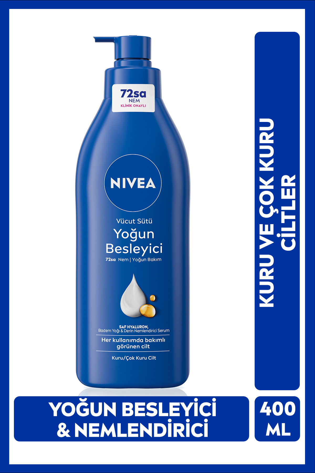 3. E vitamini ve Badem Yagi:NIVEA Besleyici Vücut Sütü Derinlemesine nemlendirici vücut sütü, badem yagi ve E vitamini içerir.