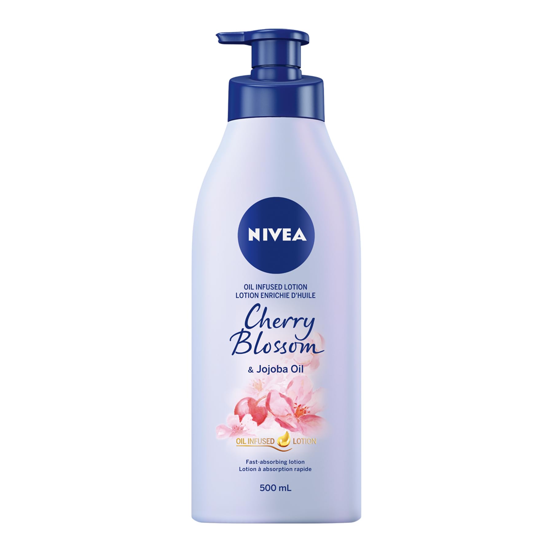 NIVEA Oil Infused Cherry Blossom & Jojoba Oil Body Lotion 24-Hour Moisture Scented Lotion All Skin Types Fast Absorbing Non Greasy Daily Body Moisturizer Dermatologically Tested Skin Care 500mL