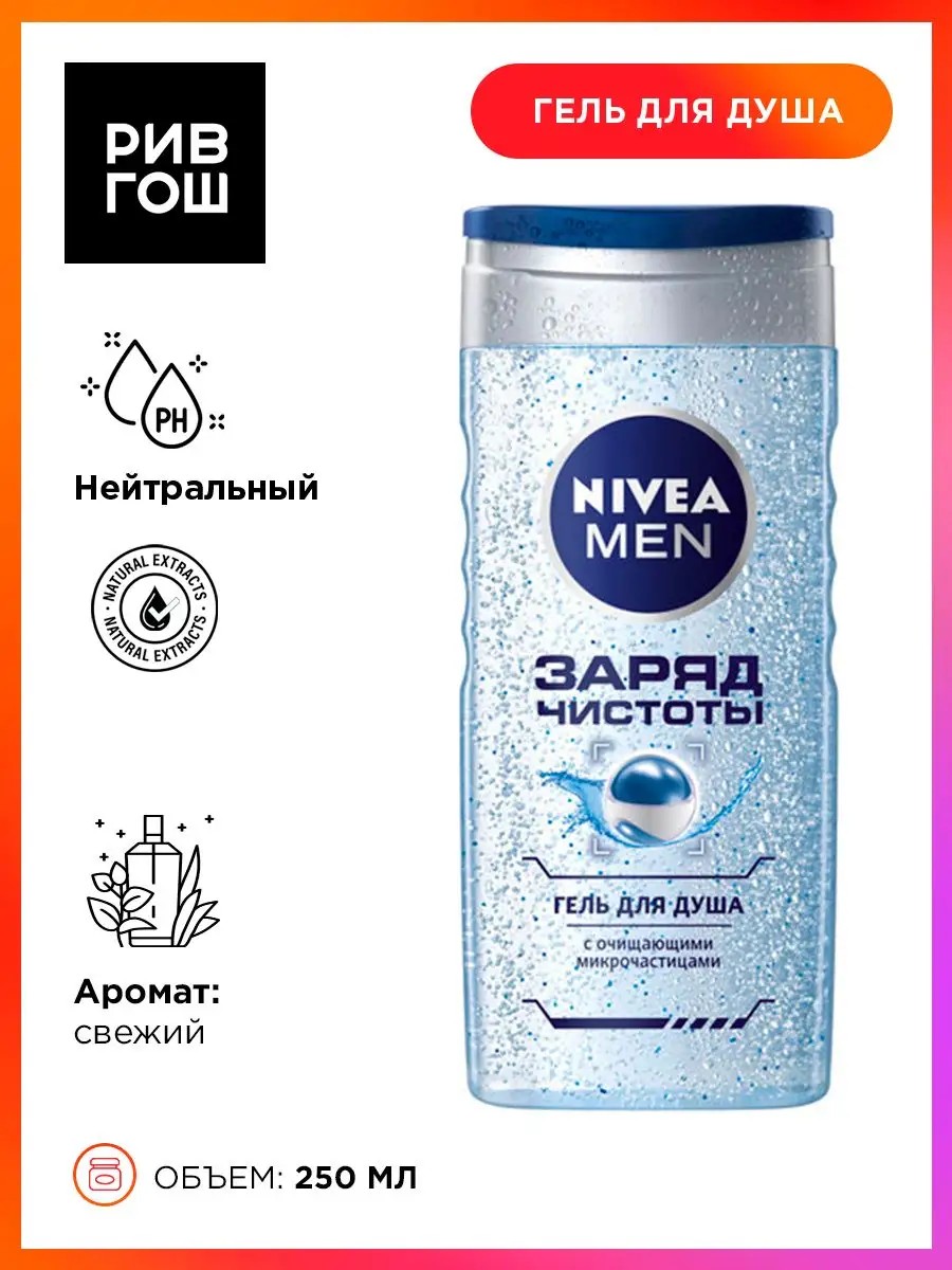 Инновационная формула геля с массирующими микрочастицами бережно очищает, увлажняет и дарит ощущение свежести.Гель для душа Nivea.У нас Вы всегда сможете подобрать женскую и мужскую парфюмерию, декоративную косметику, а так же уходовые средства для волос, тела и лица. РИВ ГОШ вдохновляет дарить подарки каждый день. Гель для душа прекрасный способ начать свой день с увлажненной и мягкой кожи. Этот гель для душа создан с использованием высококачественных ингредиентов, которые обеспечат не только увлажнение, но и аромат, который будет сопровождать вас на протяжении всего дня. Гель для душа увлажняющий обогащен ухаживающими компонентами, они питают и увлажняют кожу, делая ее гладкой и шелковистой. Благодаря особой формуле, гель не только ухаживает за кожей, но и делает ее более упругой и эластичной. Гель для душа очищающий имеет приятную и нежную текстуру, которая не пересушивает кожу, сохраняет ее естественный баланс влаги. Насыщенный аромат геля для душа перенесет вас в атмосферу расслабления и комфорта.