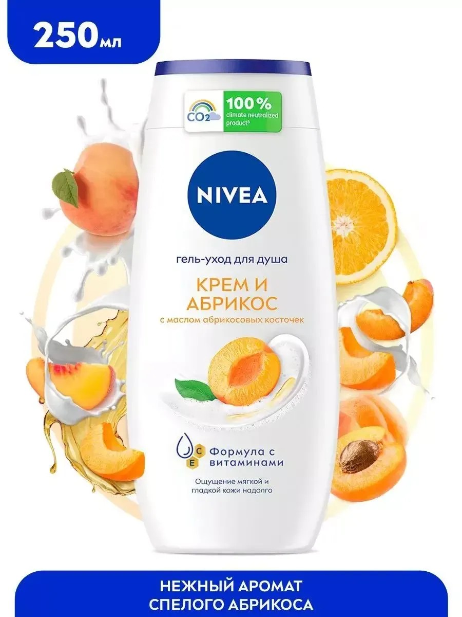 Попробуйте гель-уход для душа «Крем и Абрикос» для всех типов кожи от NIVEA. Гель для душа «Крем и Абрикос» с натуральным маслом абрикосовых косточек очищает кожу и заботится о ней, делая ее невероятно мягкой, а нежный аромат абрикоса пробудит Ваши чувства. Превратите ежедневное принятие душа в момент истинного наслаждения и заботы о себе и своем теле. Можно использовать с мочалкой для скрабирования кожи. pH-сбалансировано. Не содержит микропластик. Дерматологически протестировано.