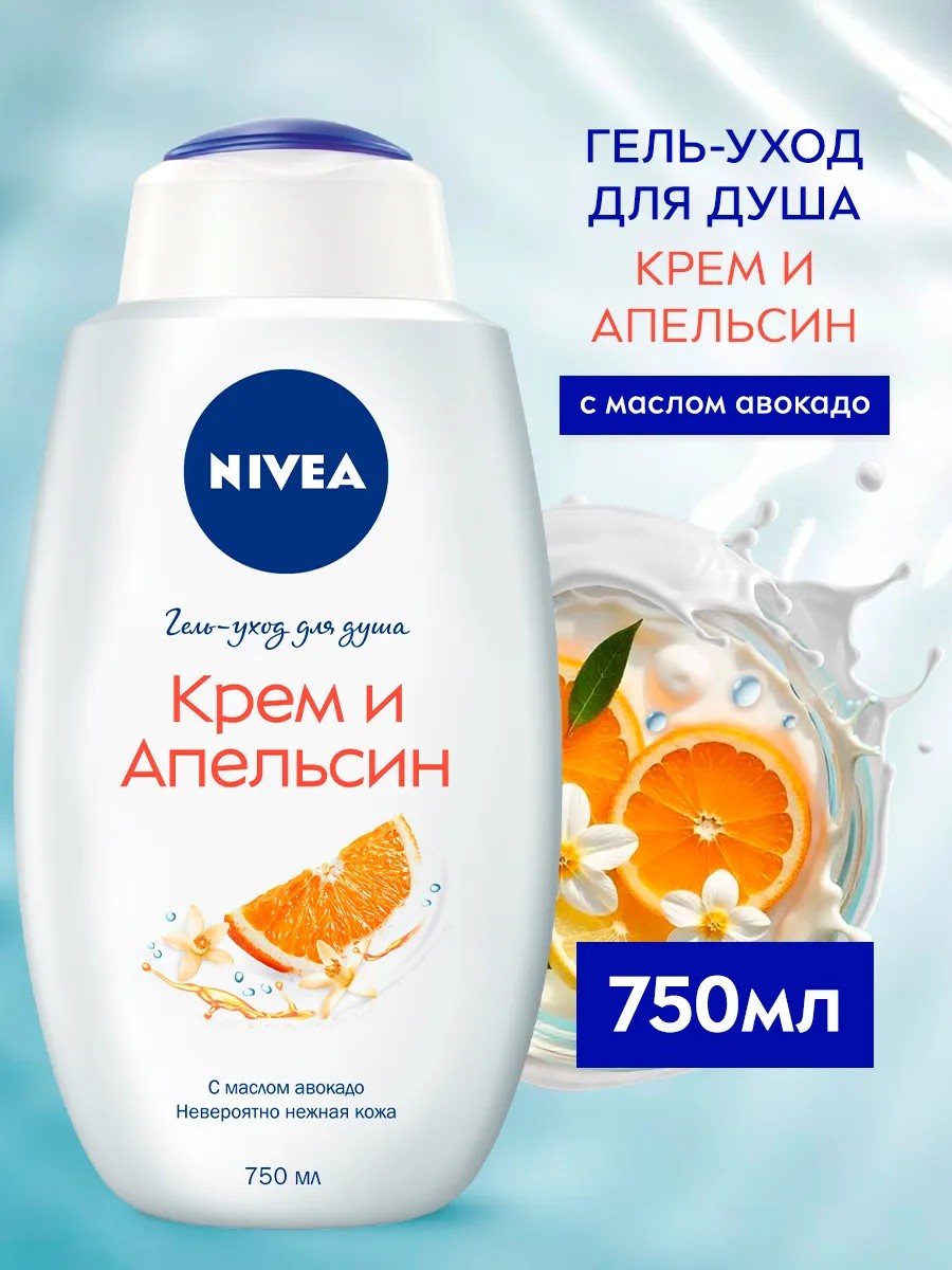 | Полное наименование товара | Гель-уход для душа женский NIVEA "Крем Апельсин" увлажняющий с маслом авокадо, 750 мл. |