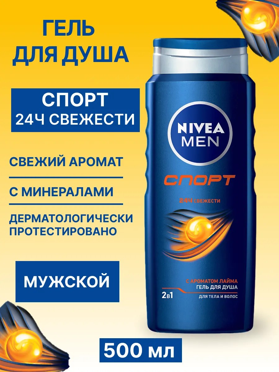 Попробуй гель для душа «Спорт» 2в1 для тела и волос для мужчин от NIVEA MEN для всех типов кожи. С минералами в своем составе эта свежая формула – отличное решение для защиты от запаха. Свежий аромат заряжает энергией и отлично подходит до и после занятий спортом. Проверь его в душе! Преврати ежедневное принятие душа в момент истинного наслаждения и заботы о себе. Подходит для ежедневного использования. pH-сбалансировано. Дерматологически протестировано. Мужской гель для душа можно использовать с мочалкой для скрабирования кожи.