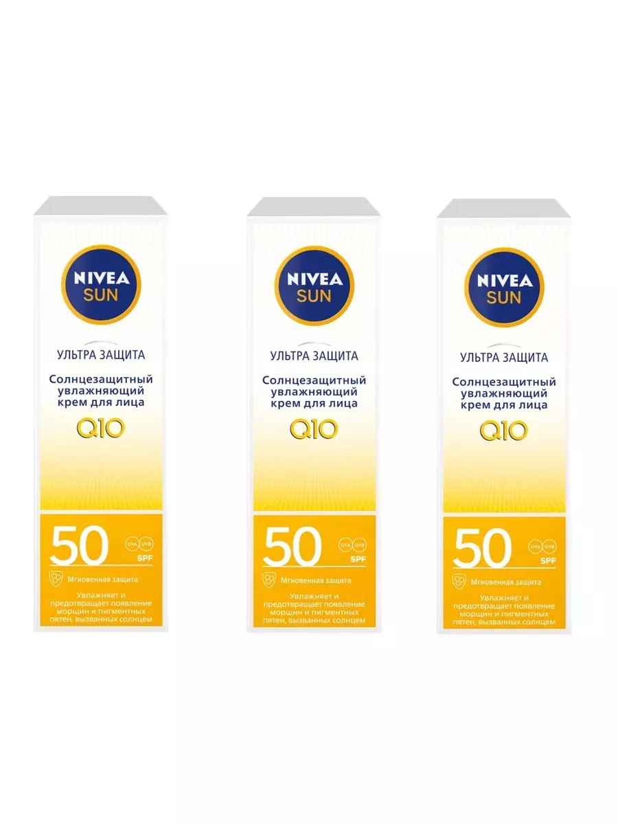 Nivea Солнцезащитный увлажняющий крем для лица Ультра защита SPF50 50мл. Комплект 3 шт. Обеспечивает высокий уровень защиты SPF 50 и увлажнение нежной кожи лица