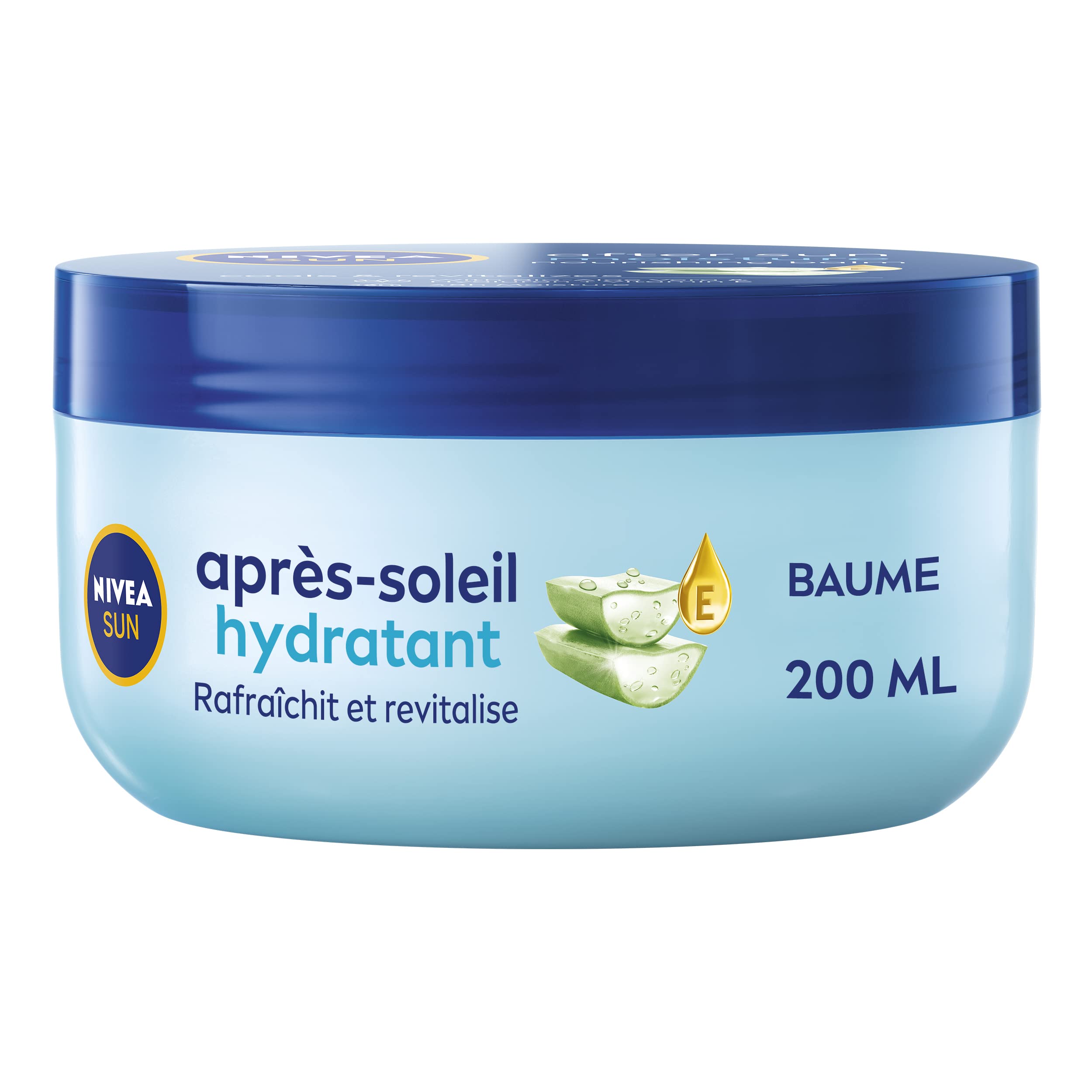 NIVEA SUN Organic Aloe Vera Moisturizing After-Sun Balm – for intensely hydrated, soft and fresh skin After exposure to the sun, the skin is weakened and dehydrated. It is therefore very important to provide it with the hydration it needs. This is why NIVEA SUN created this Organic Aloe Vera Moisturizing after-sun balm. It penetrates quickly into the skin, provides a pleasant feeling of freshness while preserving the suppleness of the skin and regenerates it thanks to its vitamin E. Thanks to its treatment formula, this nourishing after-sun treatment provides intense hydration to the skin for 48 hours and leaves skin soft and silky. It also contains organic aloe vera, a plant known for its soothing properties on skin weakened by the sun. Apply a generous and even dose of the product all over the body after each exposure to the sun or as soon as the skin seems dehydrated. The benefits of Moisturizing after-sun balm: Enriched with organic aloe vera to relieve weakened skin Provides intense, long-lasting hydration to the skin Penetrates quickly and provides a feeling of freshness Quantity: 1 x 300 mlPackaging - NIVEA SUN Organic Aloe Vera Moisturizing After-Sun Balm, after-tan product, care with organic aloe vera and vitamin E, 48h hydration, 1 x 300 ml, article number: 85646. Application instructions - Apply a generous amount of the tanning product after each sun exposure or whenever the skin feels dehydrated. Fast absorption - This body balm absorbs quickly and leaves the skin feeling pleasantly fresh after sun exposure. Organic aloe vera - This naturally formulated moisturizer is enriched with aloe vera, known for its soothing properties on skin weakened by the sun. 48h hydration - This after-sun balm intensely moisturizes and nourishes dehydrated and sun-damaged skin, for supple skin and a beautiful tan. NIVEA SUN Baume après-soleil Hydratant Aloe Vera Bio – pour une peau intensément hydratée, douce et fraîche Après une exposition au soleil, la peau est fragilisée et déshydratée. Il est donc très important de lui apporter l'hydratation dont elle a besoin. C'est pourquoi NIVEA SUN a créé ce baume après-soleil Hydratant Aloe Vera Bio. Il pénètre rapidement dans la peau, procure une agréable sensation de fraîcheur tout en préservant la souplesse de la peau et la régénère grâce à sa vitamine E. Grâce à sa formule soin, ce soin après-soleil nourrissant procure une hydratation intense à la peau pendant 48 h et laisse ainsi une peau douce et soyeuse. Il contient également de l'aloe vera bio, une plante connue pour ses vertus apaisantes sur la peau fragilisée par le soleil. Appliquez une dose généreuse et homogène du produit sur l'ensemble du corps après chaque exposition au soleil ou dès que la peau semble déshydratée. Les avantages du baume après-soleil Hydratant : Enrichi en aloe vera bio pour soulager la peau fragilisée Procure une hydratation intense et longue durée à la peau Pénètre rapidement et procure une sensation de fraîcheur Quantité : 1 x 300 mlEmballage - Baume après-soleil Hydratant Aloe Vera Bio NIVEA SUN, produit après bronzage, soin à l'aloe vera bio et à la vitamine E, 48 h hydratation, 1 x 300 ml, numéro d'article : 85646. Conseils d'application - Appliquez une dose généreuse du produit bronzage après chaque exposition au soleil ou dès que la peau semble déshydratée. Absorption rapide - Ce baume corporel pénètre rapidement et apporte une agréable sensation de fraîcheur à la peau après une exposition au soleil. Aloe vera bio - Ce soin hydratant à la formule naturelle est enrichi en aloe vera, réputée pour ses propriétés apaisantes sur la peau fragilisée par le soleil. Hydratation 48 h - Ce baume après-soleil hydrate et nourrit intensément la peau déshydratée et agressée par le soleil, pour une peau souple et un joli bronzage.