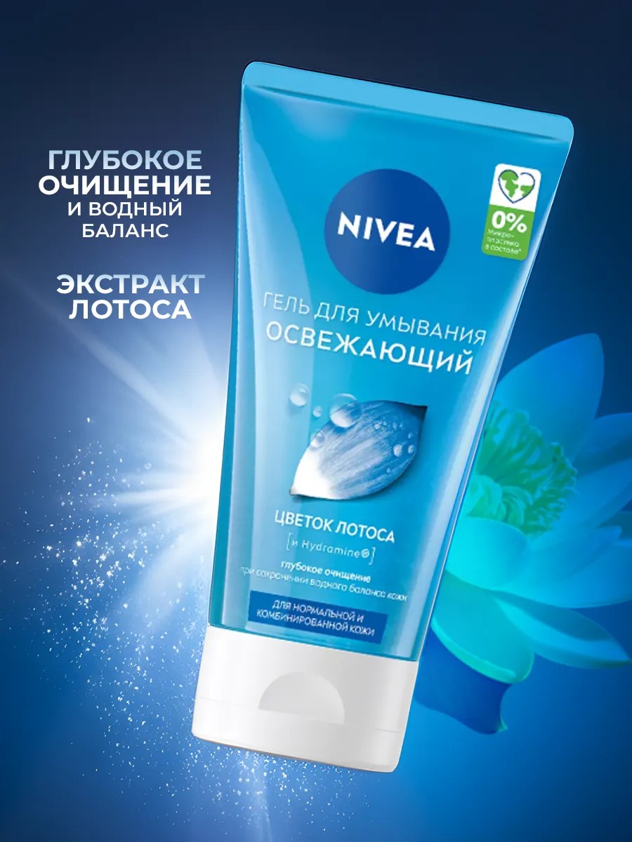 NIVEA, Cleansing and Washing Gel for Normal Skin, 150 ml. Nivea Gentle Cleansing Refreshing Washing Gel for Normal Skin with Lotus Flower and Soft Water is ideal for your daily skincare ritual for gentle cleansing and a feeling of freshness. It cleanses without drying out the skin and maintains its natural moisture balance. The effective formula gently cleanses the skin of impurities. Skin is clean, looks healthy, and breathes freely! Directions: Squeeze a small amount of product into your palms, massage it into your face, and rinse with water. This product is designed to rid the skin of daily negative environmental impacts and makeup residue. It is not a makeup remover.