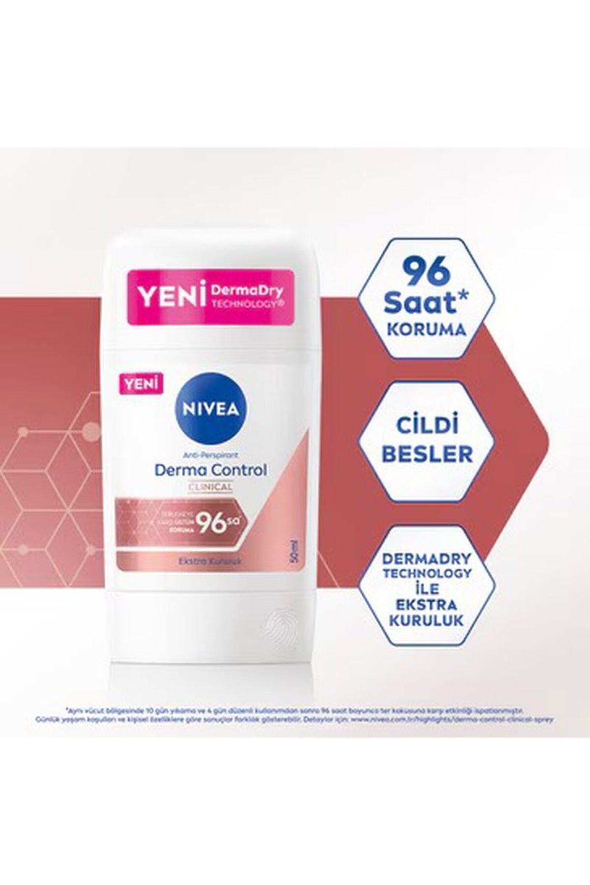 Cildinize önem veren ter ve ter kokusuna karsi 96 Saat anti-perspirant üstün deodorant korumasi saglar. Içerdigi mineraller ve C vitamini ile cildi besler. Özel formülü ile koltuk altinda olusan kararmalara karsi etkilidir. Özel Dermadry technology ile koltuk altinizda ekstra kuruluk saglar. Özel formülümüz kuru ve ferah kalmanizi ve özgüvenle hareket etmenizi saglar.