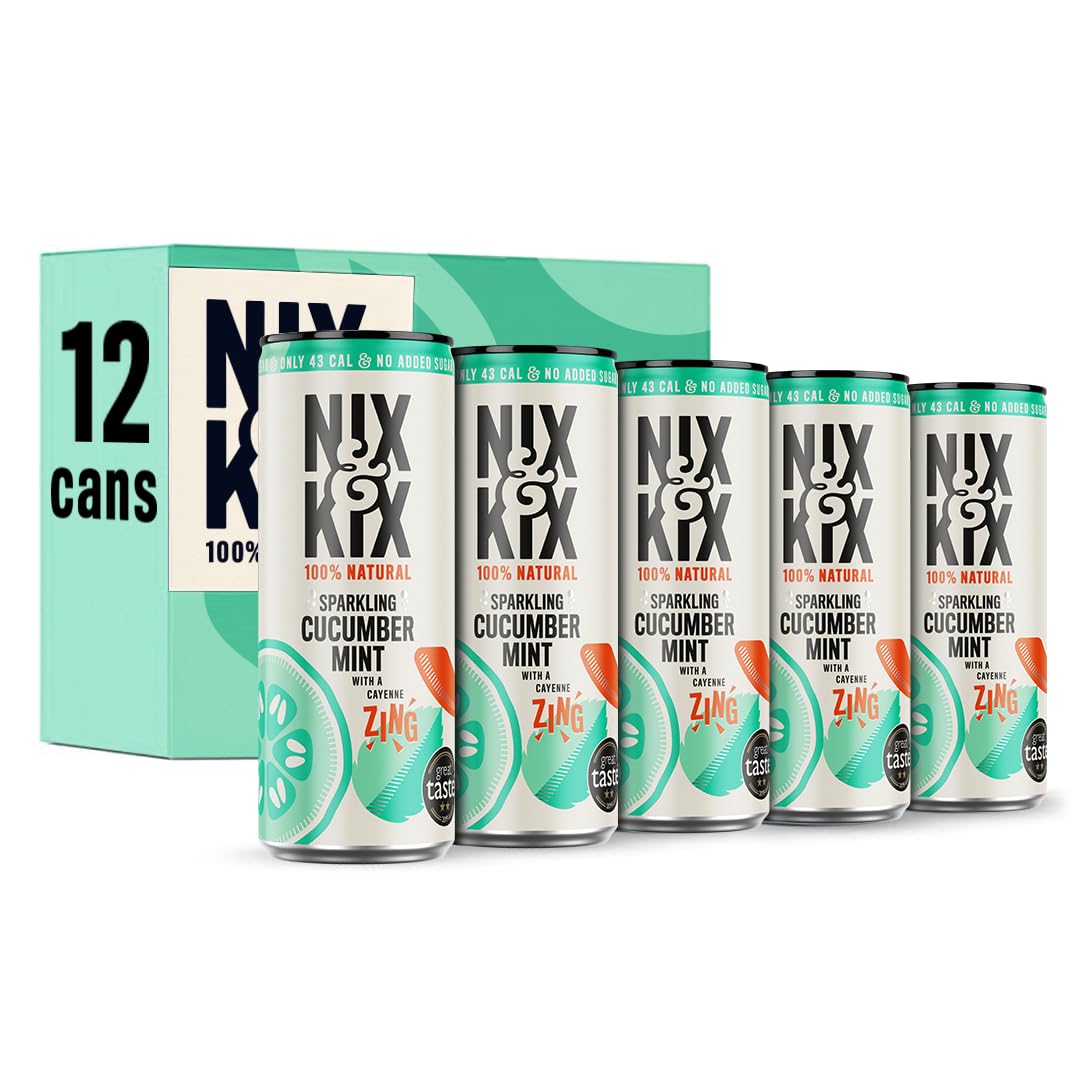 NIX AND KIX Nix & Kix Cucumber & Mint (12 x 250ml) - No Added Sugar - Low Calorie - Vegan - No Artificial Sweeteners Low Carb Sparkling Natural Soft Drink