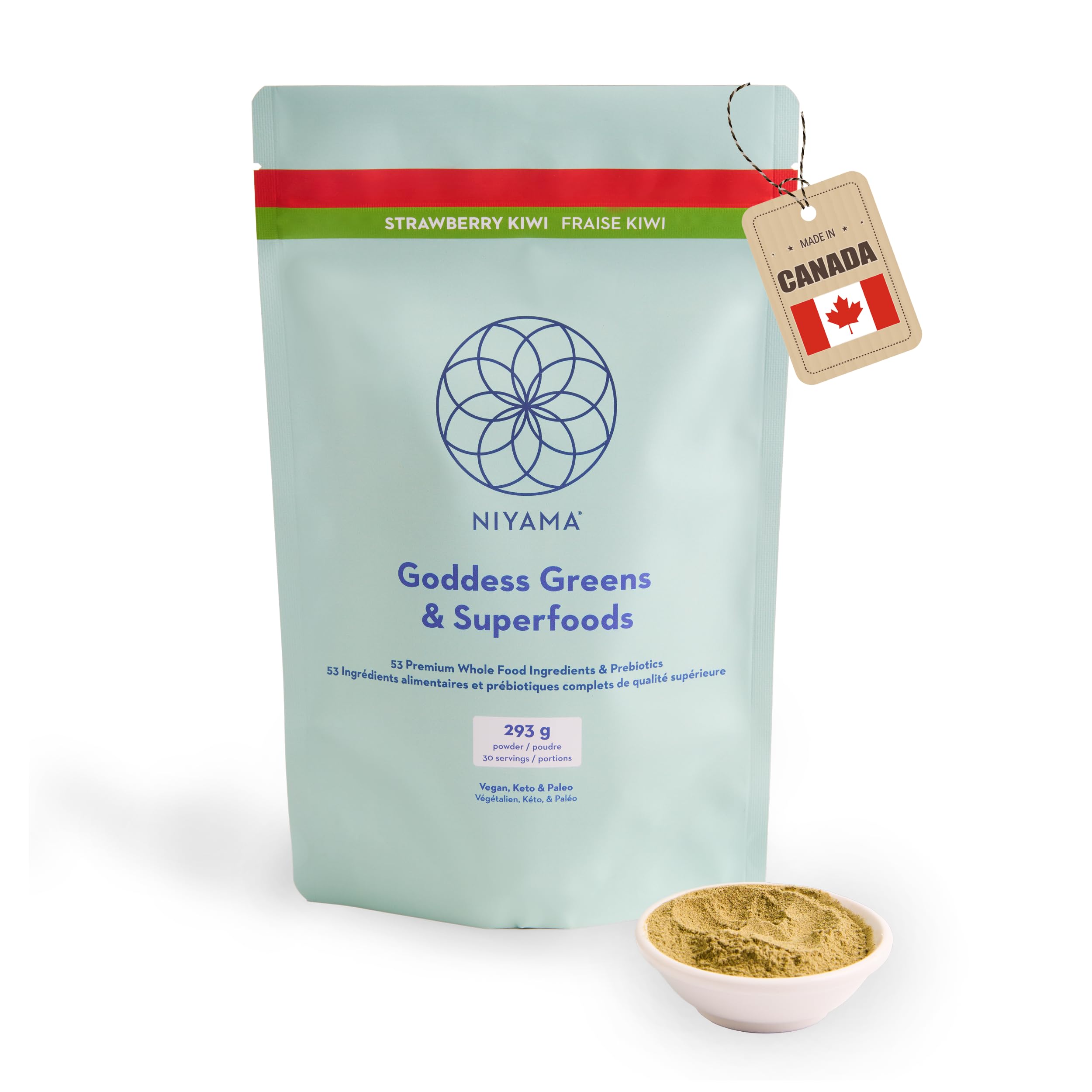Goddess Greens Superfood Powder by Niyama - Daily Greens Powder with 53 Organic Food Ingredients - Vegan, Paleo and Keto-Friendly - Natural Strawberry Kiwi Flavour (30 servings)