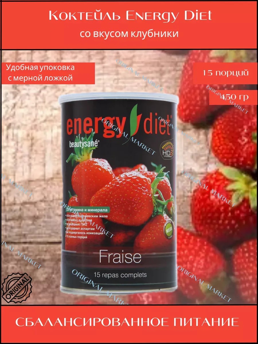 Energy Diet Клубника – сладкий вкус спелых летних ягод. Смешанный с прохладным молоком, этот коктейль всегда заканчивается слишком быстро.