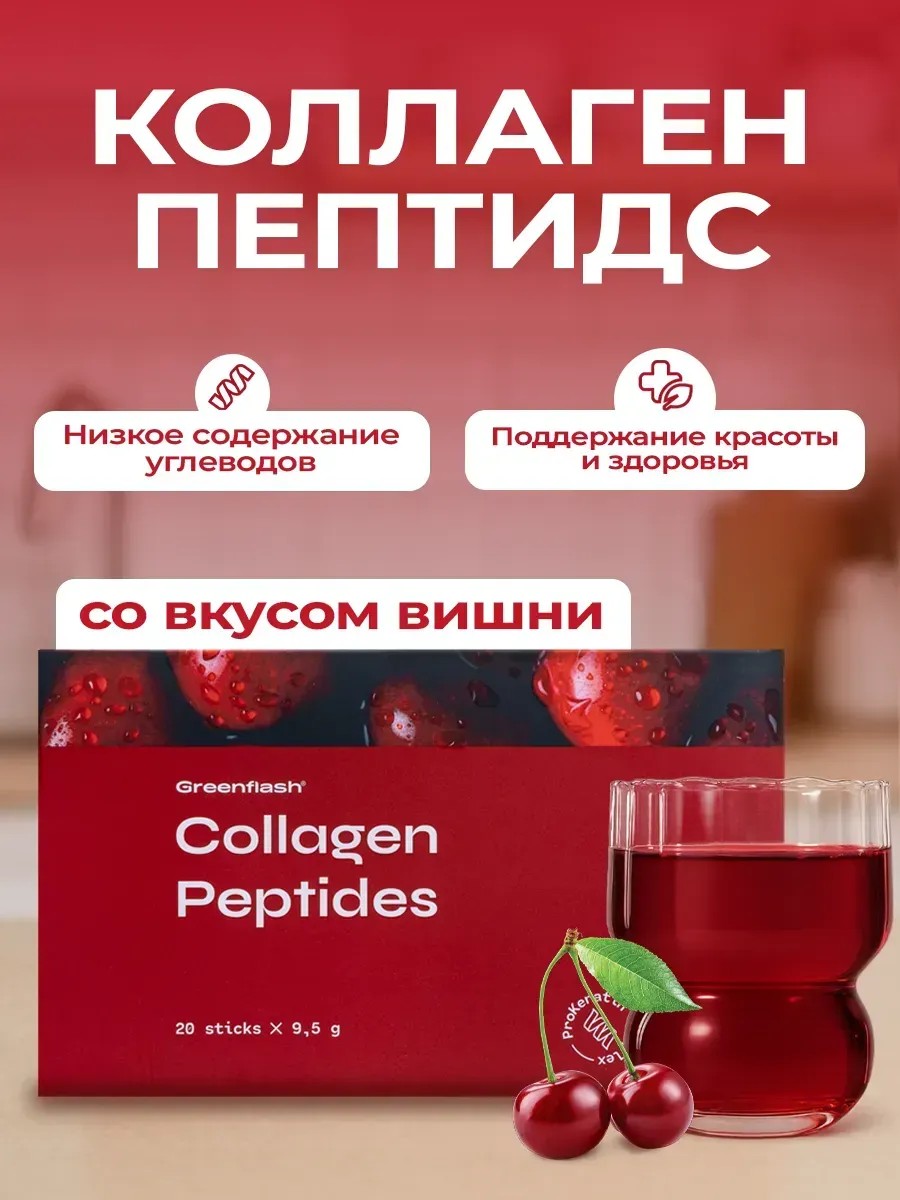 Collagen Peptides — инновационная формула коллагена с пептидами. Низкое содержание углеводов с оптимальным составом обеспечивает эффективное усвоение и высокую биодоступность. Продукт обладает терпким вкусом спелой вишни.