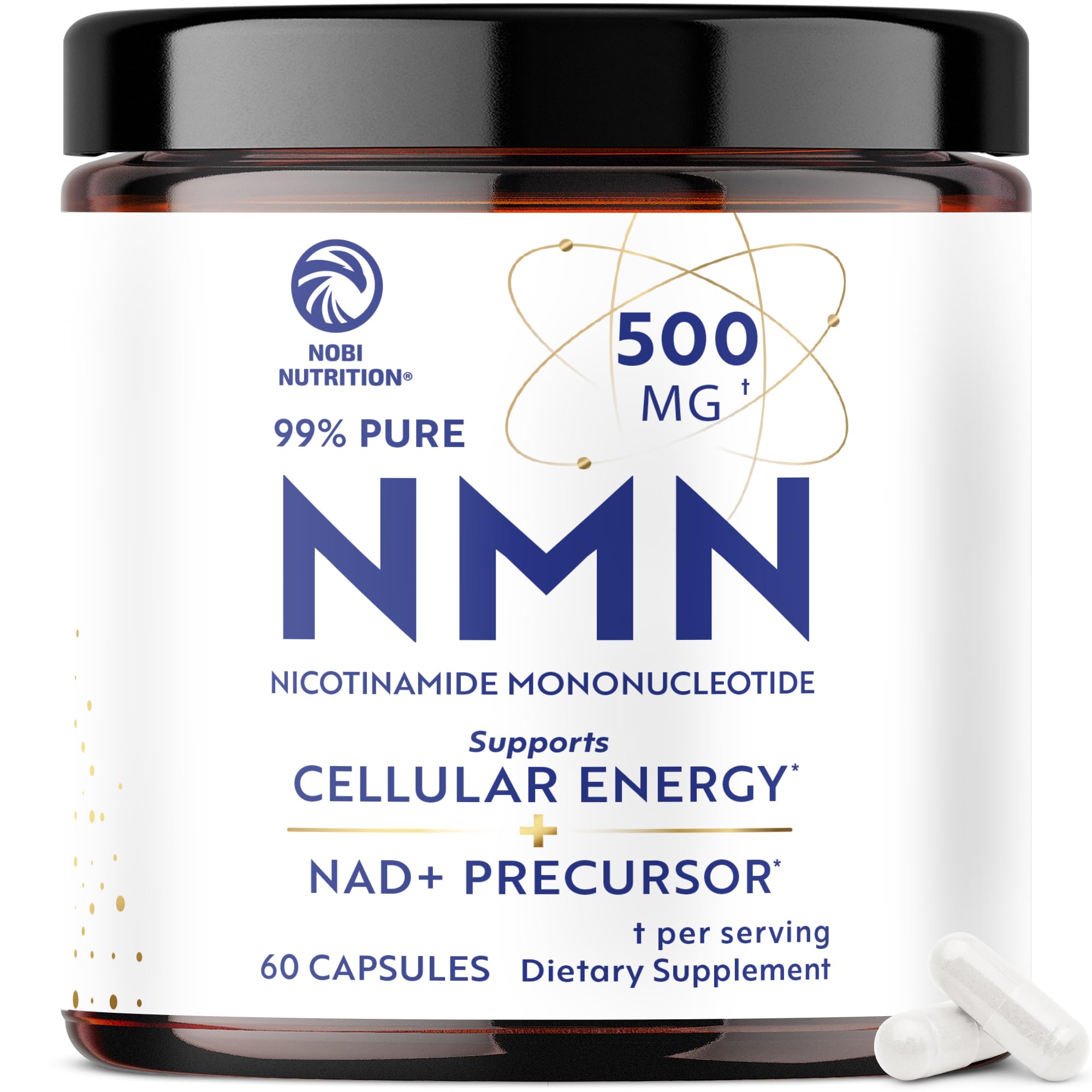 NMN Supplement 500mg | 99% Pure | NAD+ Precursor for Cellular Energy Longevity Repair and Healthy Aging Support | Third-Party Tested & Non-GMO | Nicotinamide Mononucleotide | 60 NMN Capsules