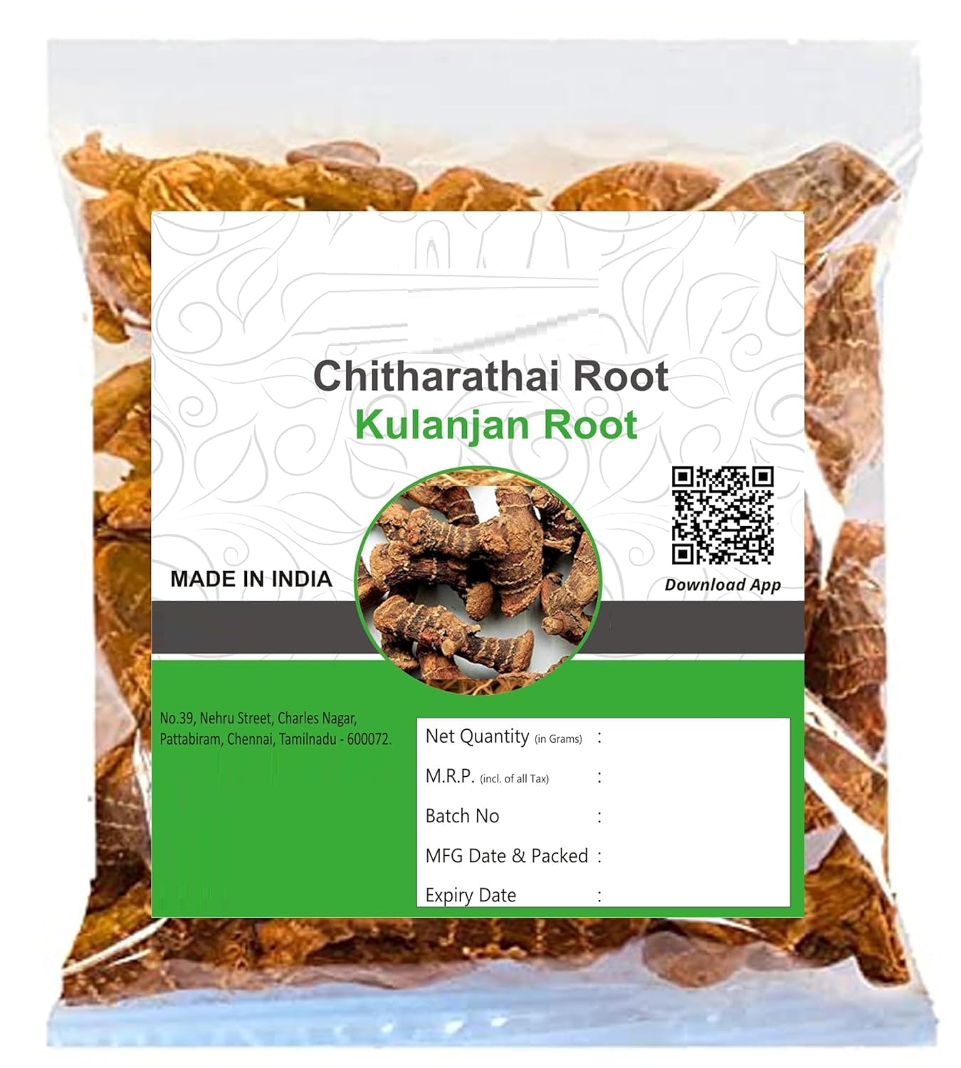 Dried chitharathai root, 200 g, Kulanjan root, Sanna-Dumparashtrakamu, small galanga, rasna root, useful for rheumatic diseases (lot of 2 x 100 g)Infusion or Tea: You can make an infusion or tea from Chitharathai root by boiling sliced or grated Chitharathai root in water for about 10 to 15 minutes. Let it steep for an additional 5 to 10 minutes before straining. You can drink this tea hot or cold. Adding honey or lemon for flavor is optional. Digestive Health: Chitharathai root is commonly used to promote digestive health. It has carminative properties, meaning it can help relieve digestive issues such as bloating, gas, and indigestion. Anti-inflammatory Effects: Chitharathai contains compounds with anti-inflammatory properties. These compounds can help reduce inflammation in the body. Pain Relief: Chitharathai may have analgesic properties, meaning it can help relieve pain. Antioxidant Activity: Chitharathai contains antioxidants that help neutralize harmful free radicals in the body. By reducing oxidative stress, Chitharathai can help protect cells from damage and reduce the risk of chronic diseases.NN Dry Chitharathai Root, 200 g, racine de Kulanjan, Sanna-Dumparashtrakamu, petit galanga, racine de rasna, utile pour les maladies rhumatismales (lot de 2 x 100 g)DESCRIPTION DU PRODUIT Racine de chitharathai sèche, 200 g, racine de Kulanjan, Sanna-Dumparashtrakamu, petit galanga, racine de rasna, utile pour les maladies rhumatismales (lot de 2 x 100 g)Infusion ou thé : vous pouvez faire une infusion de racine de Chitharathai ou du thé en faisant bouillir la racine de Chitharathai tranchée ou râpée dans l'eau pendant environ 10 à 15 minutes. Laisser infuser pendant 5 à 10 minutes supplémentaires avant de filtrer. Vous pouvez boire ce thé chaud ou frais. L'ajout de miel ou de citron pour la saveur est facultatif. Santé digestive : la racine de Chitharathai est couramment utilisée pour favoriser la santé digestive. Il a des propriétés carminatives, ce qui signifie qu'il peut aider à soulager les problèmes digestifs tels que les ballonnements, les gaz et l'indigestion. Effets anti-inflammatoires : Chitharathai contient des composés aux propriétés anti-inflammatoires. Ces composés peuvent aider à réduire l'inflammation dans le corps. Soulagement de la douleur : Chitharathai peut avoir des propriétés analgésiques, ce qui signifie qu'il peut aider à soulager la douleur. Activité antioxydante : Chitharathai contient des antioxydants qui aident à neutraliser les radicaux libres nocifs dans le corps. En réduisant le stress oxydatif, Chitharathai peut aider à protéger les cellules contre les dommages et réduire le risque de maladies chroniques.