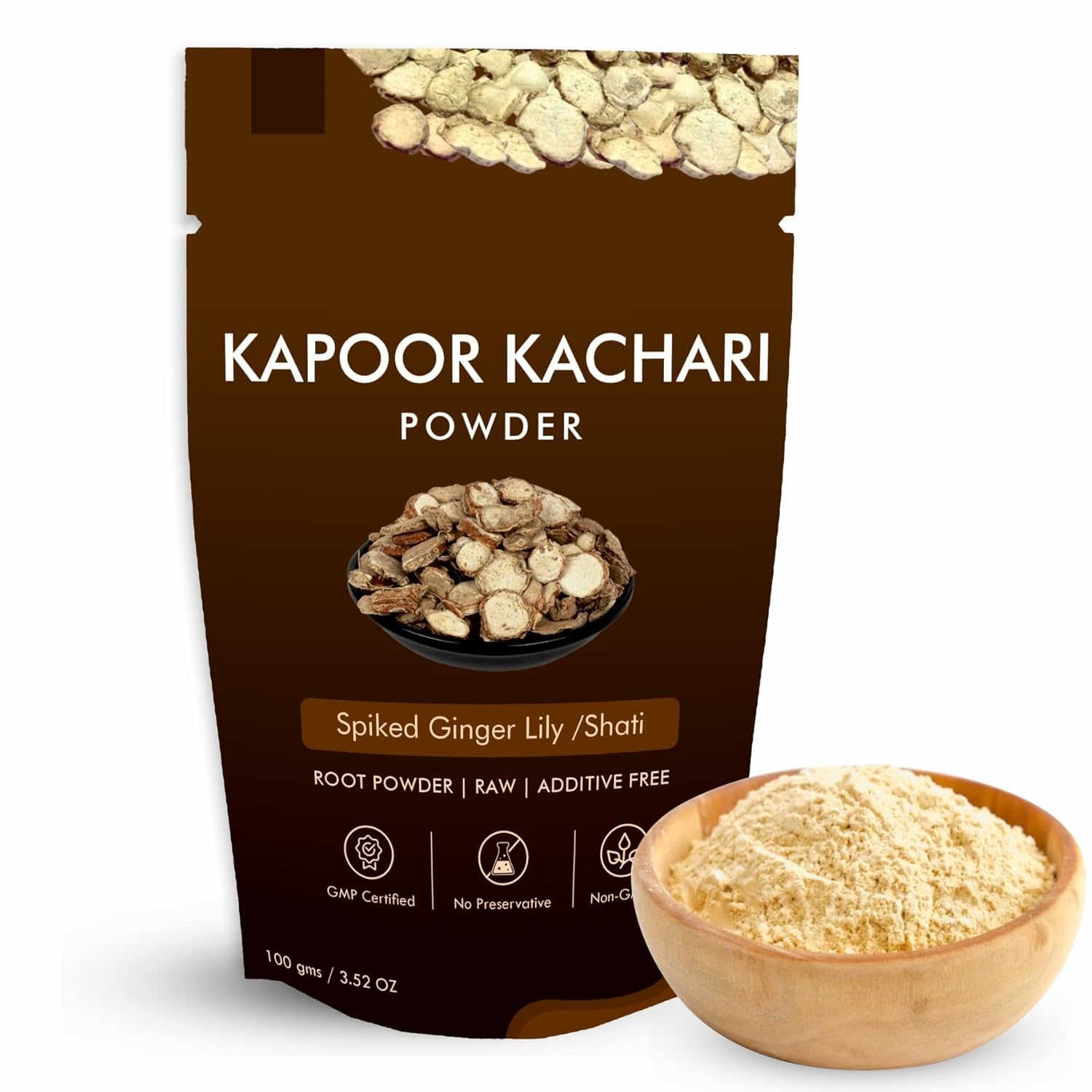 Kapoor Kachari Powder 100g – 100 Pure Natural Promotes Hair Growth Volume Strengthens Roots Enhances Skin Glow No Additives or PreservativesAdaptable Use :Perfect for DIY beauty treatments, hair masks, and face packs, this product has several advantages for both skin and hair. Enhances the Glow of the Skin :Packed with antioxidants, it helps to reduce skin irritation, give skin a natural glow, and improve skin texture. Enhances Scalp : Vitality, Fortifies Hair Roots, and Reduces Dandruff and Infections Strengthens roots and promotes healthy scalp health. Encourages Hair Volume and Growth: Reduces hair loss and breakage while stimulating hair follicles to promote thicker, glossier hair. Completely Natural Pure :This powder, which comes from high-quality Hedychium Spicatum roots, is safe and natural for hair and skin care because it doesn't contain any chemical coloring, preservatives, or additives.NN Kapoor Kachari Powder 100g Kapoor Kachari Powder 100g – 100 Pure Natural Promotes Hair Growth Volume Strengthens Roots Enhances Skin Glow No Additives or PreservativesAdaptable Use :Perfect for DIY beauty treatments, hair masks, and face packs, this product has several advantages for both skin and hair. Enhances the Glow of the Skin :Packed with antioxidants, it helps to reduce skin irritation, give skin a natural glow, and improve skin texture. Enhances Scalp : Vitality, Fortifies Hair Roots, and Reduces Dandruff and Infections Strengthens roots and promotes healthy scalp health. Encourages Hair Volume and Growth: Reduces hair loss and breakage while stimulating hair follicles to promote thicker, glossier hair. Completely Natural Pure :This powder, which comes from high-quality Hedychium Spicatum roots, is safe and natural for hair and skin care because it doesn't contain any chemical coloring, preservatives, or additives.