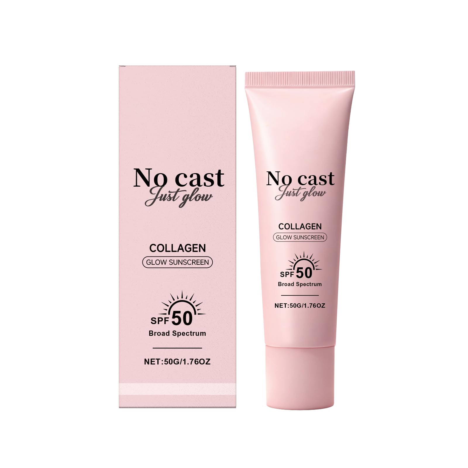 No Cast Just Glow Collagen Sunscreen SPF 50 PA++++ Facial Sunscreen Lightweight Non-Sticky Face Sunscreen No White Cast Natural Sun screen with Peptide Centella Hyaluronic Acid