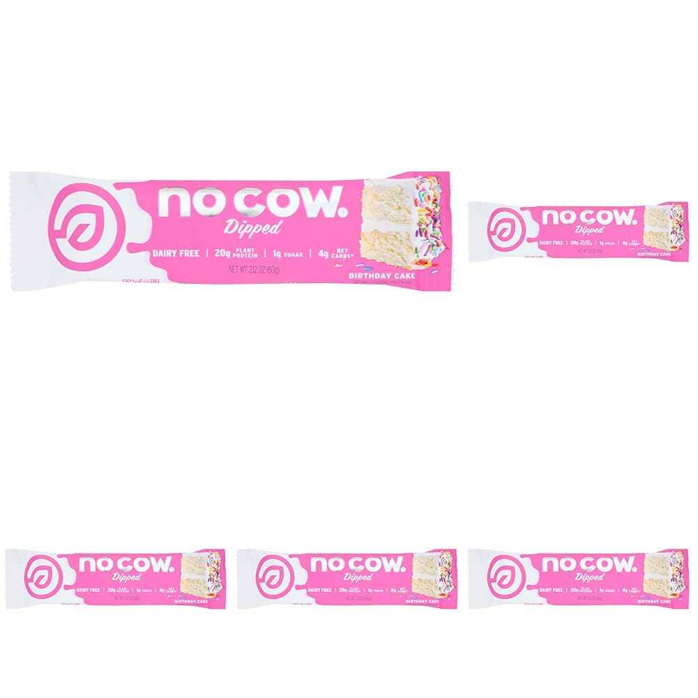 No Cow Protein Bars Birthday Cake 20g Plant Based Vegan Protein Keto Friendly Low Sugar Low Carb Low Calorie Gluten Free Naturally Sweetened Dairy Free Non GMO Kosher 1 Count (Pack of 5)