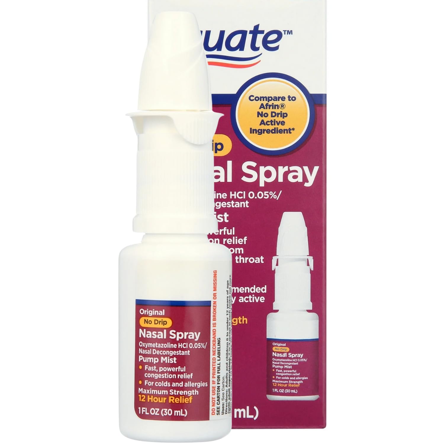 No Drip Nasal Spray offers fast and effective relief from congestion in a convenient pump mist. This decongestant is designed not to drip from the nose or down the throat. It provides soothing, maximum strength relief for nasal and sinus congestion, as well as sinus pressure, caused by colds, hay fever, and upper respiratory allergies. The active ingredient, Oxymetazoline HCl, is the top doctor-recommended nasal spray ingredient, according to a survey of U.S. physicians by an independent research firm. This original formula reduces swollen nasal membranes, helping you breathe easier. It's safety-sealed and gluten-free.nasal spray decongestant, nose spray decongestant, nose drops, oxymetazoline nasal spray, nose spray allergy, nasal congestion relief, nasal spray, nasal spray, nasal soray, steroid nasal spray, hcl spray, no drip nasal spray, menthol nasal spray, phenylephrine nasal spray, nasel spray, nasal steroid spray, nazal nasal spray, best decongestant, family care nasal relief spray, nose soray, nose drops decongestant adult, nose decongestant spray, descongestionante nasal para adultosNo Drip Formula: This decongestant spray uses a pump mist that prevents the from dripping down your nose or throat. Breathe Easier: No Drip Nasal Spray helps reduce swollen nasal membranes, allowing you to breathe more easily. Fast-Acting: Experience quick and effective relief from cold and allergy symptoms, including temporary relief from sinus congestion and pressure. Soothing 12-Hour Maximum Strength Relief: No Drip Nasal Spray delivers up to 12 hours of strong relief from nasal congestion caused by colds, hay fever, and upper respiratory allergies. Active Ingredient: This nasal spray contains Oxymetazoline HCl, the top doctor-recommended nasal spray ingredient, as identified by an independent market research firm surveying U.S. physicians. No Drip Nasal Spray, Pump Mist, 12 Hour, Oxymetazoline Hcl, 1 fl oz.