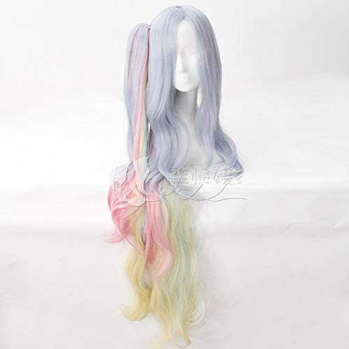No Game No Life Shiro Cosplay Wig 120cm Blue Pink Yellow Mix Long Wavy Heat Resistant Synthetic Hair Clip Ponytail Wigs +Wig Cap
