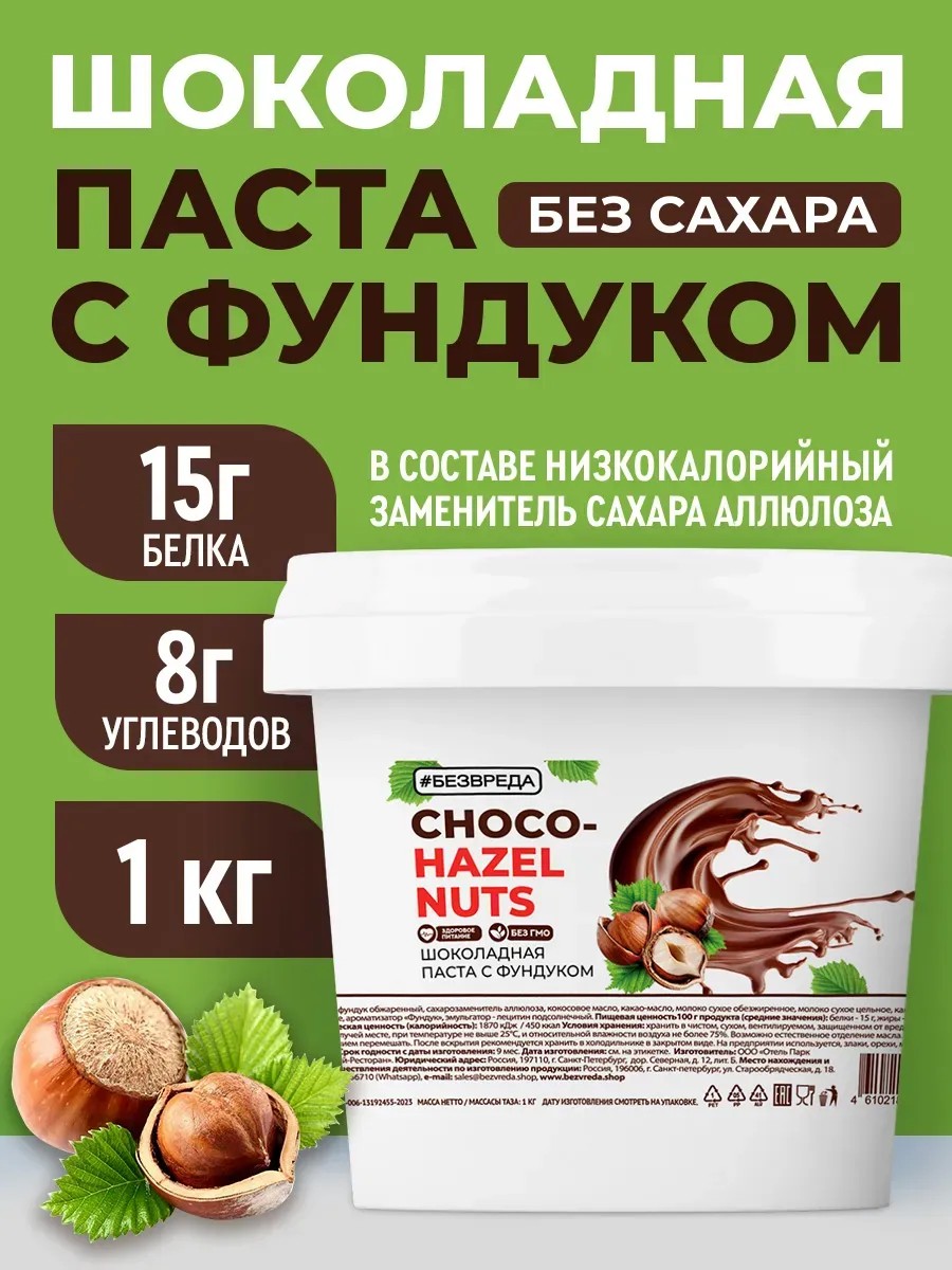 | Ingredients | Roasted hazelnuts; sweetener allulose; cocoa butter; skim milk powder; whole milk powder; natural cocoa powder; cocoa mass; natural hazelnut flavoring; emulsifier - sunflower lecithin; vegetable fat (coconut oil); Flavoring "Hazelnut" |