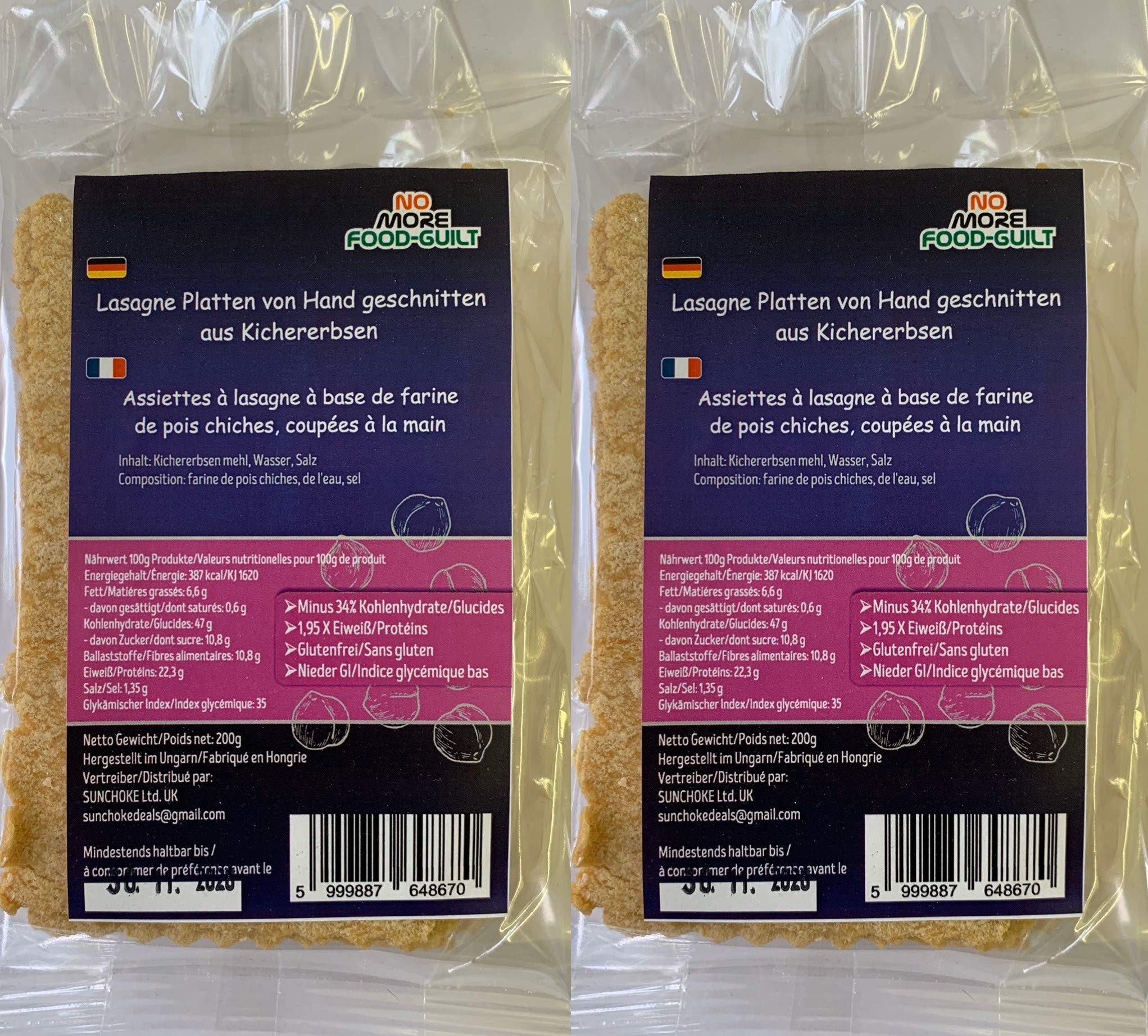 NO MORE FOOD-GUILT Lasagne Platten von Hand geschnitten aus Kichererbsenmehl natürliche 2X200g