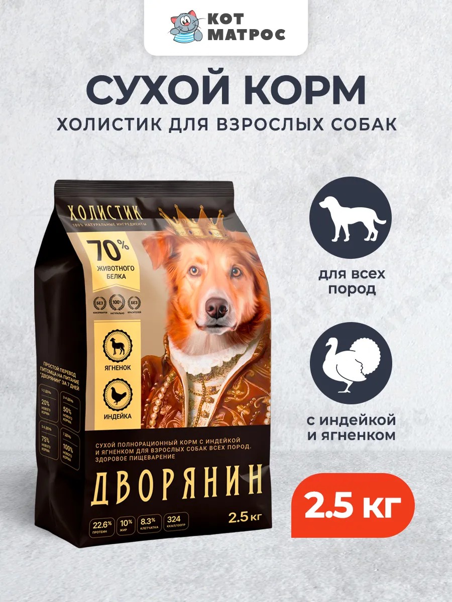 Дворянин Сухой корм для собак всех пород с индейкой и ягненком-2,5кг