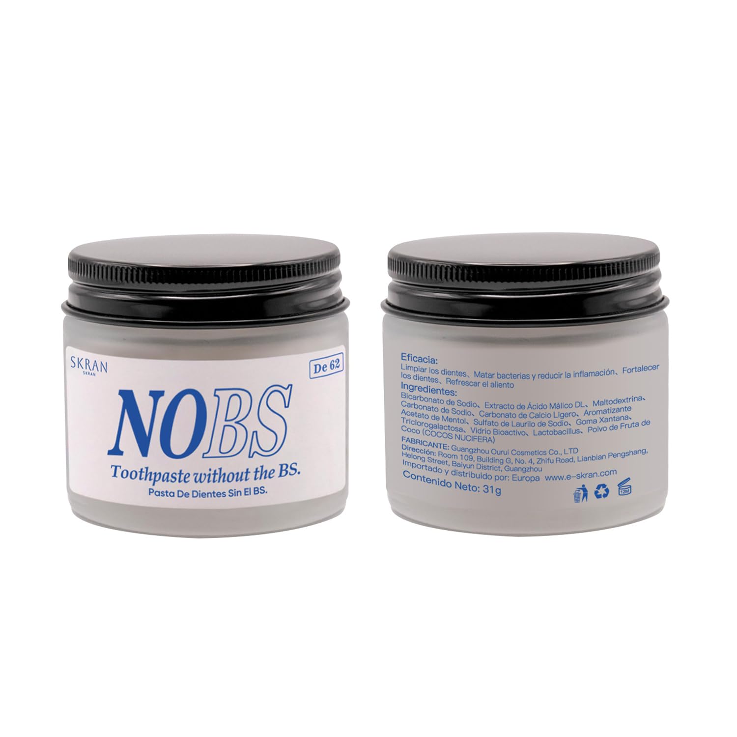Enjoy refreshing minty breath with gentle ingredients. Our composition provides long-lasting freshness and revitalizes your breath to achieve superior oral health with our chewable toothpaste tablets. Our formula helps restore balance to your oral environment, providing complete protection against plaque and bacterial growth. INGREDIENTS Refer to the ingredients list. SAFETY WARNING: Due to differences in light and screen settings, the color of this product may vary slightly from the image. Please allow slight size deviation due to manual measurement. Travel selection: Hydroxyapatite toothpaste is small in size and easy to carry, making it an ideal choice for travel. Whether you are traveling for business or leisure, remineralizing toothpaste can provide you with intimate oral care at any time. Effective oral care: No BS toothpaste tablets can effectively remove plaque, prevent tartar and bad breath, so you have healthy teeth and fresh breath. Chewable toothpaste tablets are rich in natural active ingredients, which can protect gums while caring for teeth, providing comprehensive oral care. Strengthens tooth enamel: Nobs toothpaste tablets contain unique active ingredients, which are an ingredient that can effectively strengthen tooth enamel and promote tooth mineralization. Regular use of Nobs toothpaste can help you maintain dental health, prevent tooth decay, and enhance your teeth's natural defenses. Fluoride-free formula: The chewable toothpaste tablets use a fluoride-free formula to ensure oral health while avoiding the possible side effects of excessive fluoride consumption. The natural paste lozenges can protect your oral health with a reasonable formula. Refreshing mint flavor: The remineralizing toothpaste contains refreshing mint elements, and the refreshing flavor can bring a unique refreshing experience to your mouth. Every time you brush your teeth, you can feel the fresh breath of nature. No BS toothpaste tablets give your teeth a healthy shine in freshness. Profitez d'une haleine de menthe rafraîchissante avec des ingrédients doux. Notre composition offre une fraîcheur durable et revitalise votre haleine pour atteindre une santé bucco-dentaire supérieure avec nos comprimés de dentifrice à mâcher. Notre formule aide à rétablir l'équilibre de votre environnement bucco-dentaire, offrant une protection complète contre la plaque dentaire et la croissance bactérienne INGRÉDIENTS Reportez-vous à la liste des ingrédients AVERTISSEMENT DE SÛRETÉ En raison des différences de luminosité et de paramètres d'écran, la couleur de ce produit peut varier légèrement de celle de l'image. Les mesures étant prises à la main, les tailles indiquées peuvent varier légèrement Sélection de voyage : le dentifrice hydroxyapatite est de petite taille et facile à transporter, ce qui en fait un choix idéal pour les voyages. Que vous soyez en voyage d'affaires ou de loisirs, le dentifrice reminéralisant peut vous fournir des soins bucco-dentaires intimes à tout moment. Soins bucco-dentaires efficaces : les comprimés de dentifrice No BS peuvent efficacement enlever la plaque dentaire, prévenir le tartre et la mauvaise haleine, de sorte que vous avez des dents saines et une haleine fraîche. Les comprimés de dentifrice à mâcher sont riches en ingrédients actifs naturels, qui peuvent protéger les gencives tout en prenant soin des dents, offrant des soins bucco-dentaires complets. Renforce l'émail des dents : les comprimés de dentifrice Nobs contiennent des ingrédients actifs uniques, qui sont un ingrédient qui peut renforcer efficacement l'émail des dents et favoriser la minéralisation des dents. L'utilisation régulière du dentifrice Nobs peut vous aider à maintenir la santé dentaire, prévenir les caries dentaires et améliorer la capacité de défense naturelle des dents. Formule sans fluorure : les comprimés de dentifrice à mâcher utilisent une formule sans fluorure pour garantir la santé bucco-dentaire tout en évitant les effets secondaires possibles d'une consommation excessive de fluorure. Les pastilles en pâte naturelle peuvent protéger votre santé bucco-dentaire grâce à une formule raisonnable. Goût de menthe rafraîchissant : le dentifrice reminéralisant contient des éléments de menthe rafraîchissants, et le goût rafraîchissant peut apporter une expérience rafraîchissante unique à votre bouche. Chaque fois que vous vous brossez les dents, vous pouvez sentir le souffle frais de la nature. Les comprimés de dentifrice No BS donnent à vos dents une brillance saine dans la fraîcheur.