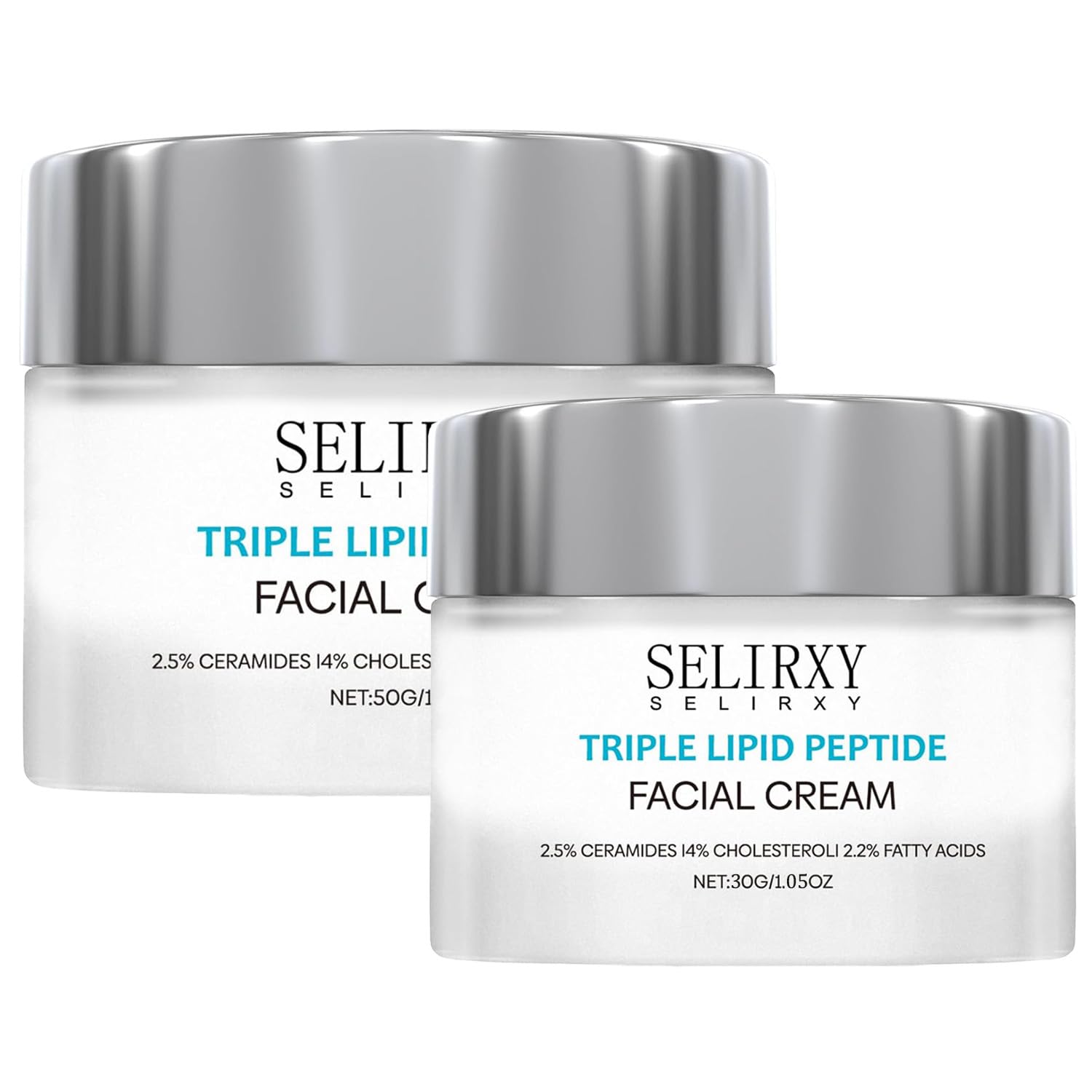 DESIGNED FOR MIDDLE AND OLDER WOMEN - SELIRXY Triple Lipid Peptide cream is specially formulated for middle-aged and older women, use it consistently every day for 30 days and you'll be amazed at the difference you'll make!. Mild and non-stimulating - mild formula, soft texture, locking anti-aging energy, continuous moisturizing and moisturizing, through a light fragrance, non-stimulating, non-sticky, apply on the face is particularly comfortable. Tightening Skin - Adding camellia seed oil and Star Collagen Tightening Peptide, the texture is refreshing, strengthening the skin to resist oxidative damage, locking in collagen that is not easily lost, and firming wrinkles all over the face. Hydration and moisturizing - very nourishing, very well absorbed, moisturizing effect is also particularly ideal, nutrition can be truly supplemented to the base of the muscle, for middle-aged and senior women's skin dehydration, yellowing, fatigue problems, condensed skincare energy, so that the skin is hydrated and elastic. Upgrade formula - SELIRXY Triple Lipid Peptide cream is uniquely mixed with 2.5 pure ceramide, 4 natural cholesterol and 2.2 fatty acid to target the root of anti-aging and make skin look younger.